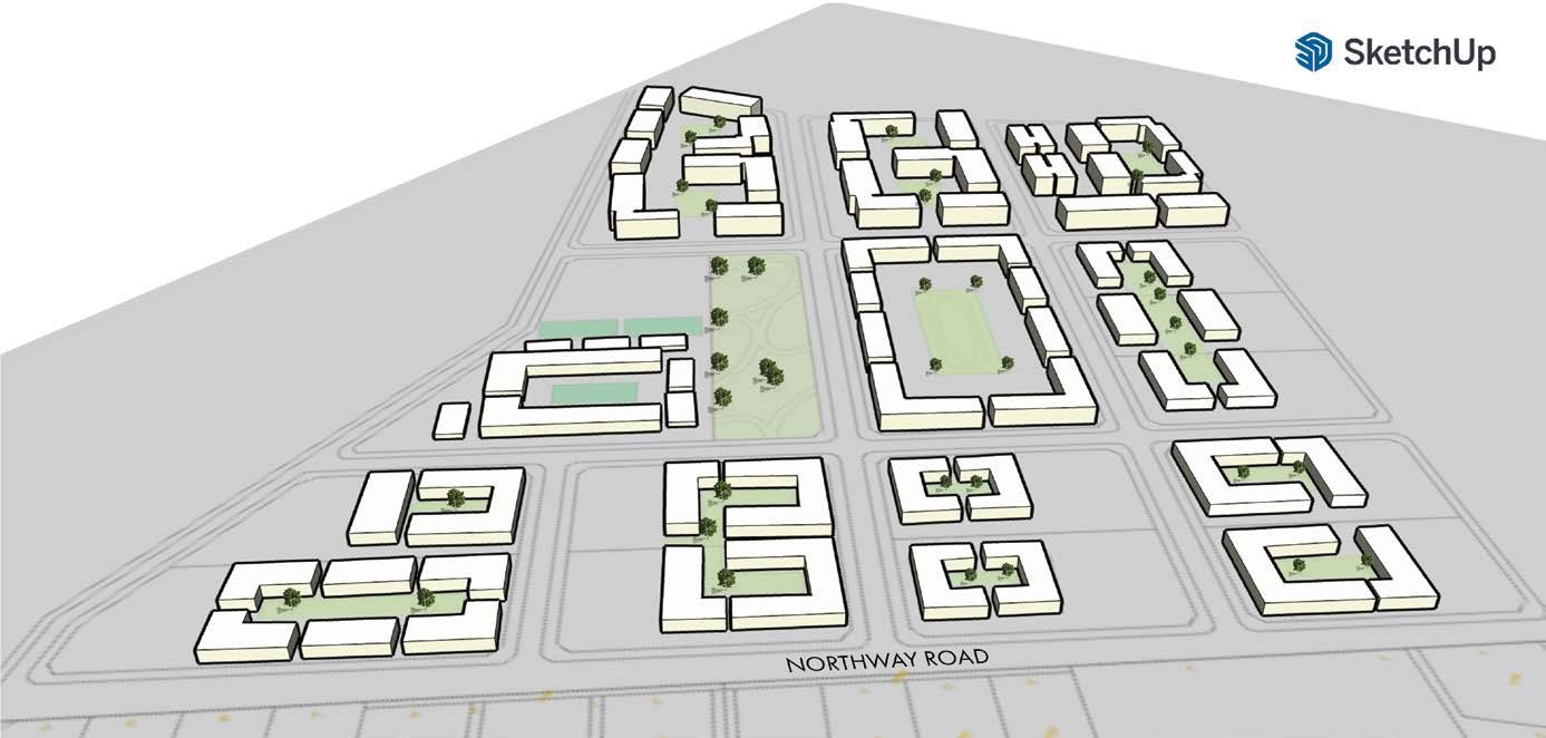 Environmental Sustainability being practiced on the site through vegitated parks, on street treesrain gardens 10m