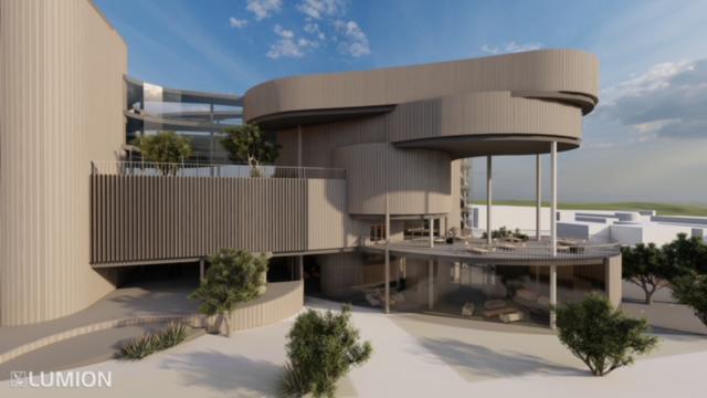 The ground floor and first-floor act as an extension to Yale Road and the Amic Deck, as well as the Origins Centre, with retail and restau rants spilling onto Yale Road. The use of ramps allows for universal access to all floors. The natural slope of the site allowed for a double volume space below the auditorium, furthermore, this space, along with the internal atrium space, acts as a performance hub and a place for exhibi�ons. The structure is seen as a shell that accommodates various facili�es independently.