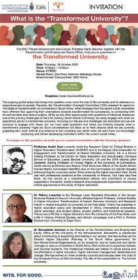 The following key points are relevant to the Wits’ Transformation Pillars: