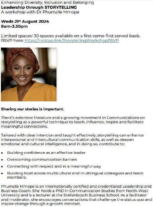 Workshop with Phumzile Mmope on Leadership through Storytelling on 21 August. 2024.