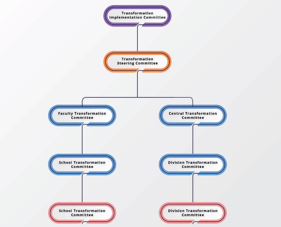The university’s Transformation governance structures include the Transformation Implementation Committee (TIC) and theTransformation Steering Committee (TSC).The TIC is responsible for overseeing the disbursement, monitoring and evaluation of equity funding, while the TSC focuses on ensuring the alignment of transformation strategies and operations across social justice partners, such as the Gender Equity Offi ce, the Disability Rights Unit and the Transformation Offi ce, in consultation with the university’s various stakeholders represented within the structure. These structures submit reports to the University Forum (UF) and the University Council.