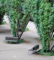 ■ Bodengebundene Vertikalbegrünung mit Rankhilfen Zielen neben der Begrünung auch auf die Beschattung von Fensterflächen ab (Schlinger, Winder etc.). Kletterhilfen sind an die Pflanzenwahl anzupassen.