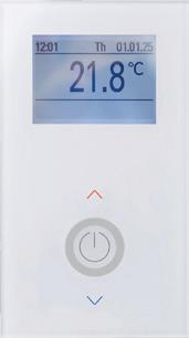 Schon sein wertiges Design überzeugt – so z. B. durch das flache Gehäuse und das LCD. Letzteres gibt Aufschluss über Uhrzeit, Raumzustände sowie den aktuellen Status der Raumklimatisierung (HLK-Anlage).