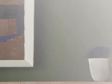 oder drei Farben gestrichen wird, die aus derselben Farbfamilie stammen können, aber verschiedene Untertöne haben. So bekommen Wände beispielsweise einen Anstrich mit „Deep Space Blue“, Türe und Zarge hingegen mit dem verwandten „Mid Azure Green“, einem tiefen Grünblau.
