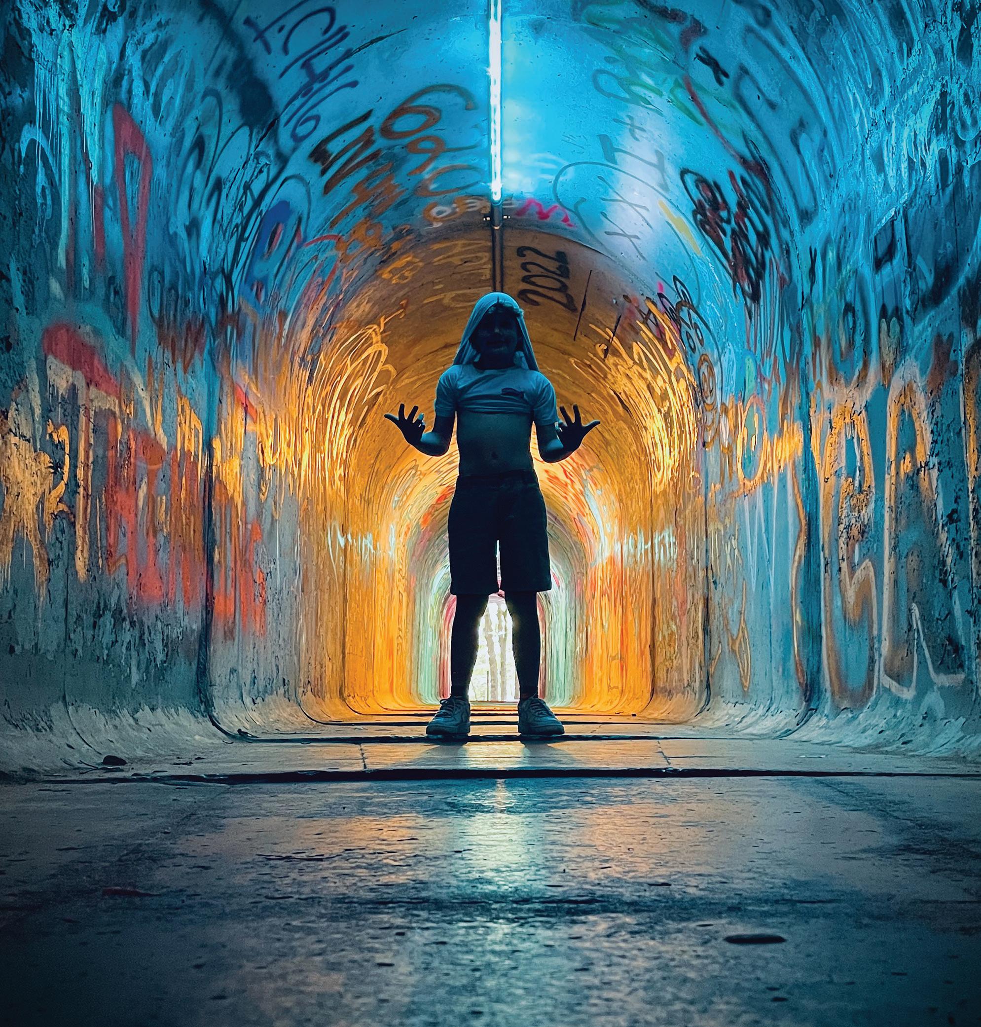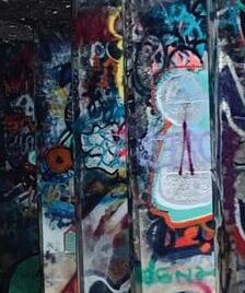 looking for a sledgehammer. We jumped over a ragged school bus, threw paint cans through old windows, and tried to slash some tires, but they all had been previously slashed. We thought our work was finished, but then we saw it: hidden away in the back of the yard sat an untouched International eighteen-wheeler with a trucker cab. The beast of a vehicle sat alone, looking over the yard with its mammoth, white, paintchipped hood and a rusted halfnude harpy perched on top.