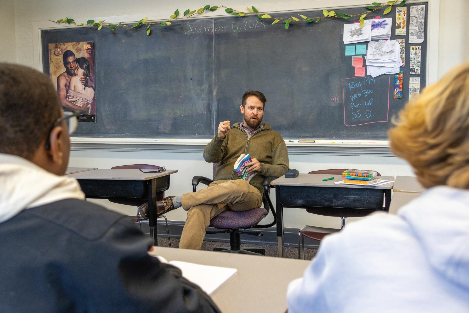 This year, we were also lucky enough to spend some time with our writer-in-residence, John Larison, who flew from Oregon to spend a month at Woodberry. Many students read his bestselling novel, Whiskey When We’re Dry, and his work with the sixth-form English classes helped produce many of our fictional short stories. Jon Bolena’s “A Light in London” grapples with the complicated and fragile relationship between Eddy, a carriage driver in 1800s London, and his master, Mr. Worthington. In “Iceboro,” Cayden Sanchez writes about a tough-love relationship between a son and his alcoholic father.
