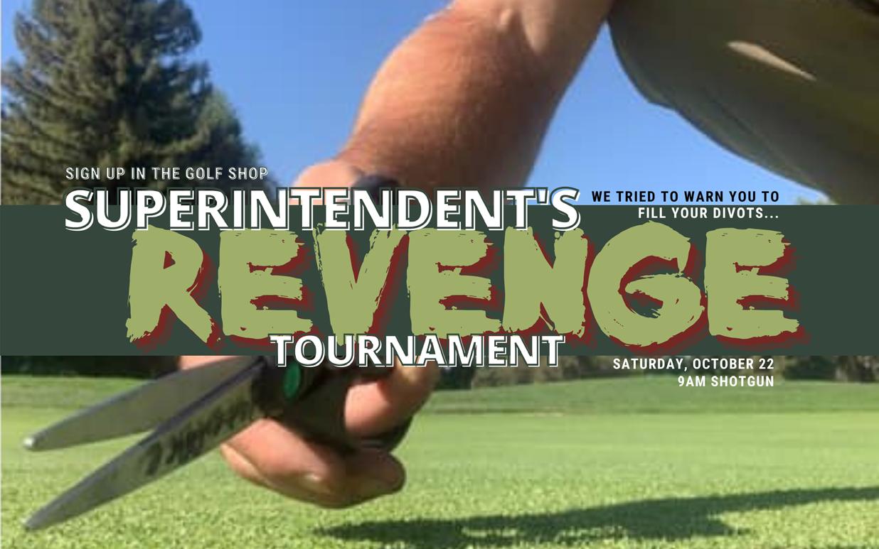 Superintendent’s Revenge is Sat, Oct 22. The course will set up in a fun and challenging fashion that will definitely test your game. Members will enjoy having a partner to lean on in a 2-Man Scramble format.