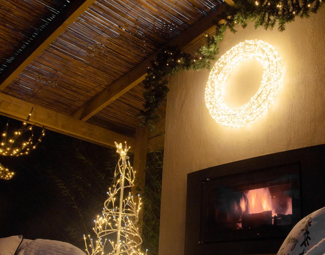 The mix of materials, textures and lighting from the wooden reindeer, the borg and fur on Santa’s white suit, the realistic foliage from the garlands and a touch of gold and brass from the Woodie’s Trend Edit Christmas collection, creates the perfect mixed media for a full-on Christmas look and feel.