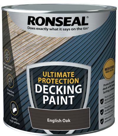 Ronseal One Coat 5Ltr €12.99 Ronseal One Coat Fence Life 12Ltr €18.99 was €22.99 save €4 Ronseal Fencelife Plus 5Ltr €23.99 Ronseal Fencelife Plus 12Ltr €29.99 was €37.99 save €8 Ronseal Garden Paints 750ml €13.99 Ronseal Garden Paints 2.5Ltr €22.99 was €27.99 save €5 Ronseal Garden Paints 5Ltr €55.99 Ronseal Ultimate Decking Rescue Paint 2.5Ltr €39.99 was €49.99 save €10 Ronseal Ultimate Decking Rescue Paint 5Ltr €62.99 was €72.99 save €10 Ronseal Direct to Metal 250ml €11.99 Ronseal Direct to Metal 750ml €24.99 was €29.99 save €5 Ronseal Direct to Metal 2.5Ltr €62.99 Ronseal 4" Fencelife Brush 1091636 €7.99 Ronseal Garden Paint Pebble 1135079 Ronseal Ultimate Protection Decking Stain Country Oak 1194257 Colour: Red Cedar 2 for €18 2 for €22 Ronseal Ultimate Decking Stain 5Ltr €58.99 was €68.99 save €10 Ronseal Ultimate Decking Stain 2.5Ltr €39.99 was €49.99 save €10 2 for €35 48 Offers valid while stocks last.