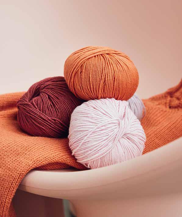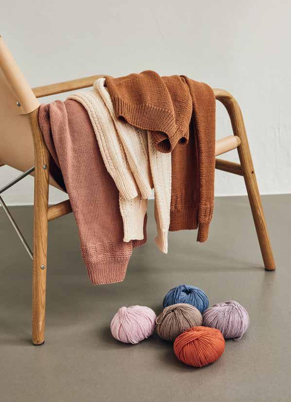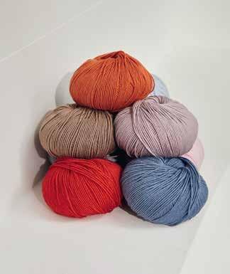 MERINO UNO Das griffige Schurwollgarn ist ideal für sportliche Styles. Die aktuelle Farbkarte umfasst 43 starke Farben, acht davon sind neu im HerbstWinter-Sortiment. Auch MERINO UNO darf in die Waschmaschine.