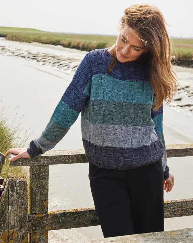 MUSTERGÜLTIG: Die zeitlosen Looks werden mit ausdrucksvollen Strukturen kombiniert. Die plastischen Muster erinnern an GANSEY-Pullover. Einst schützten sie Fischer vor Wind und Wetter. Wir haben den Stil neu interpretiert und gelegentlich mit Zöpfen garniert. Ideal für den Landgang!