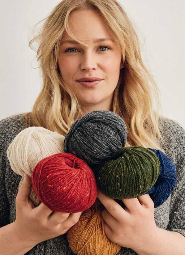 Das griffige, klassisch verzwirnte Schurwollgarn sorgt mit kleinen, bunten Noppen für eine lebhafte Optik. Erhältlich ist es in zwei Nadelstärken. Die Farbkarte umfasst 19 Töne, sechs davon sind neu. Handwäsche.
