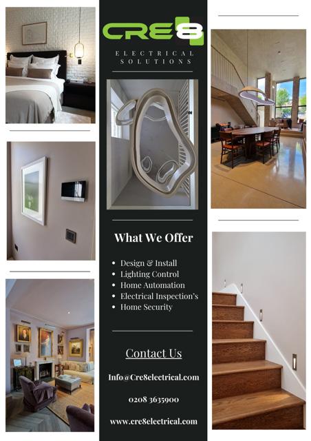 little about the background of your Company, Cre8 Electrical Solutions, was in 2014 with a vision to deliver electrical contracting services domestic and commercial clients. in luxury house refurbishments, built a reputation for excellence and the industry. Our expertise spans various electrical solutions including control, Home automation, CCTV intruder alarms, and fire alarms. commitment to quality and customer has enabled us to grow steadily, trusted partner for many property developers.