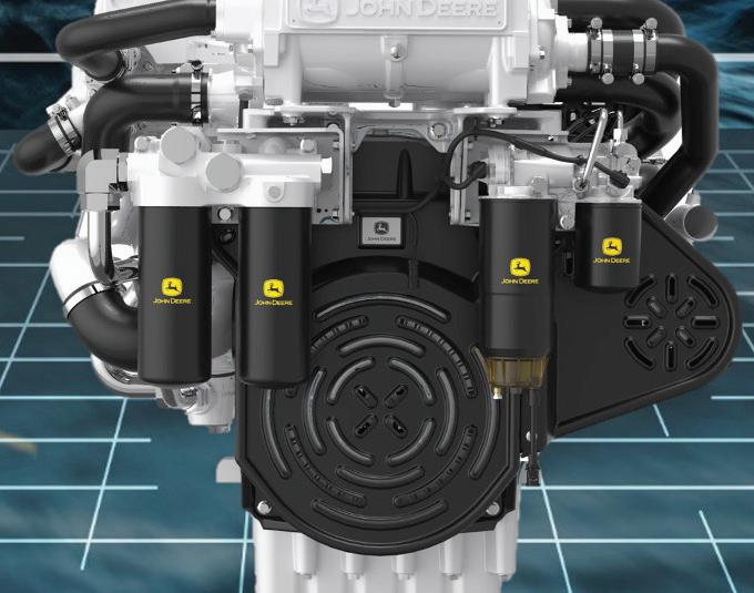 As it does with all its marine engines, John Deere marinized engines that were originally developed for agriculture applications to create the JD18 and JD14. For the rst time, the company developed the engines side by side, creating commonality for some components and systems.