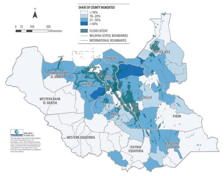 2.7 Flooded area as a proportion of total county area and flood extent of the May–October 2021 South Sudan floods 37