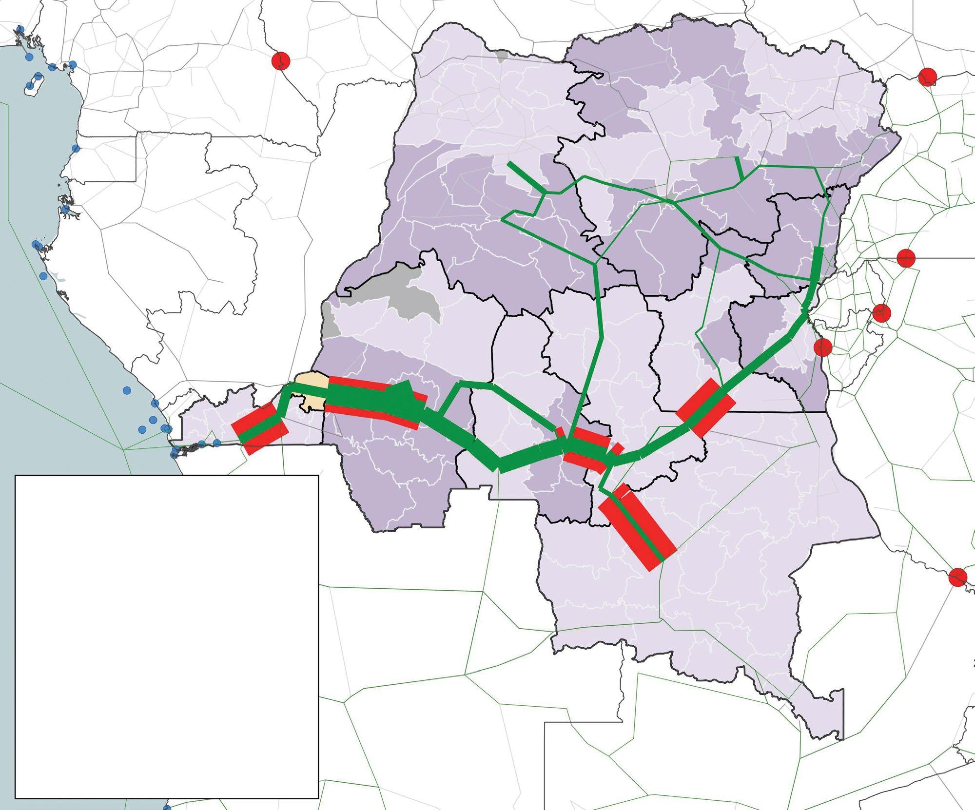 Many elements of the transport system, including road links, border crossing points, and ports, are vulnerable to climate change (refer to map 8.1). In the event of a disruption, the availability of alternative routes to facilities is key. Detour costs in several countries would be very high. The Democratic Republic of Congo and Nigeria are the most vulnerable in terms of absolute detour costs; the Democratic Republic of Congo, Djibouti, Equatorial Guinea, Guinea-Bissau, Mali, South Sudan, and Zambia are the most vulnerable on a population-adjusted basis. The Republic of Congo and Somalia have high transport cost burdens and poor local access to surplus production; the Democratic Republic of Congo and Equatorial Guinea face high costs in the event of climate-related network disruption.