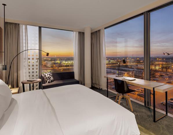 Located directly between Terminals 1 and 2 of Munich Airport, the hustle and noise are quickly forgotten upon entering the hotel‘s fascinating transparent Atrium.