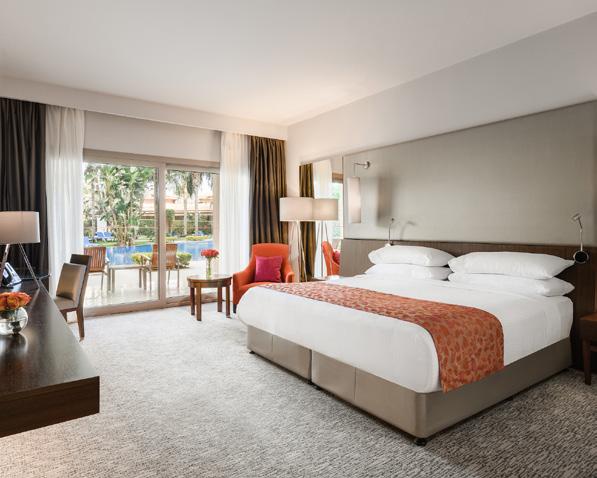 467 guest rooms, suites and serviced apartments, all with balconies or terraces, offer spectacular views of the tropical gardens, ornamental lakes, waterfalls and swimming pools.