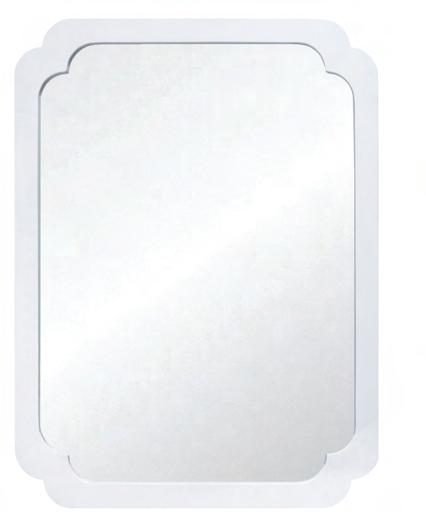 Four-door scalloped front media cabinet in glossy white lacquer. 34h x 60w x 20d