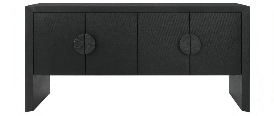 Four-door buffet in black painted natural grasscloth with black oak handles. 32.50h x 64w x 20d
