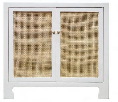 Four-door cabinet with rush front doors in matte white lacquer. 33.75h x 69.75w x 20d