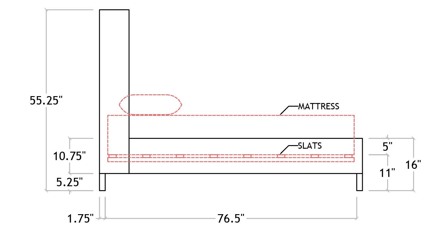 Mattress Space: 39.75”W x 76.25”D