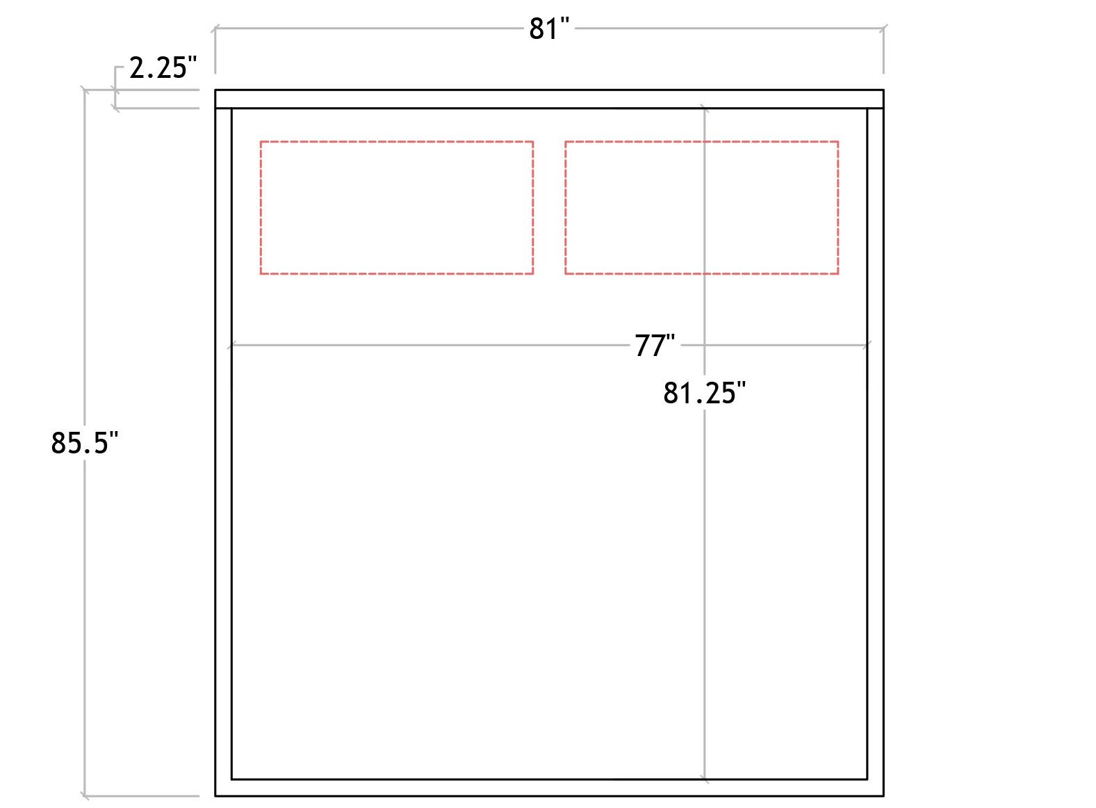 Mattress Space: 76.5”W x 81.25”D