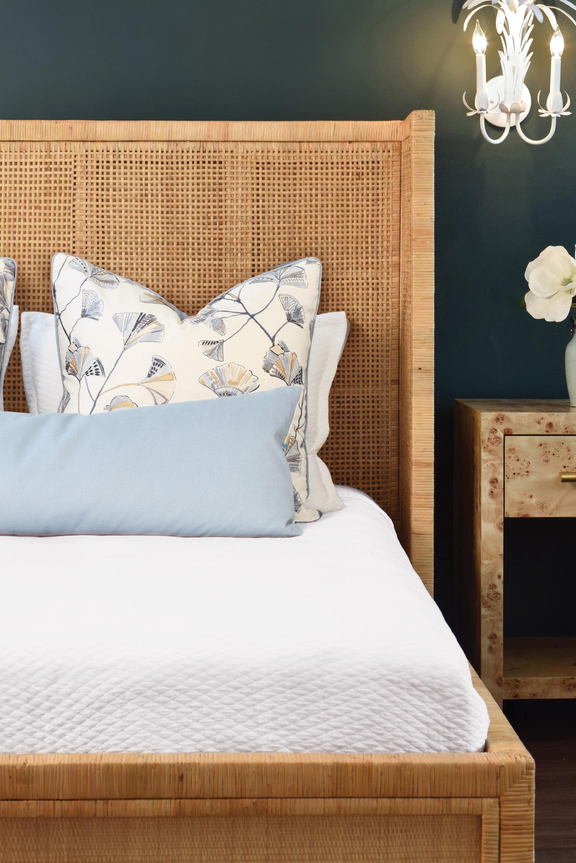 A classic silhouette with a textural twist, the Chamberlain platform bed brings refined drama to any space. Wrapped entirely in handwoven rattan, its arched headboard with intricate trim detailing makes a graceful statement, while the high footboard creates a sense of grandeur. Timeless and tailored, our Chamberlain perfectly blends natural texture with relaxed sophistication. A true statement of craftsmanship and elegance, this is the bed you’ll design the rest of your room around—an heirloom in the making!