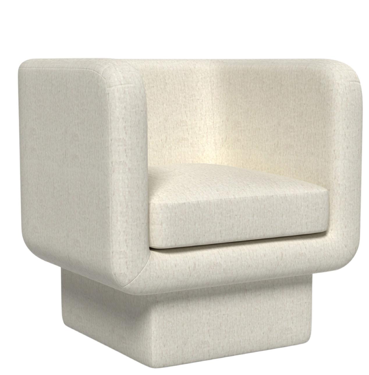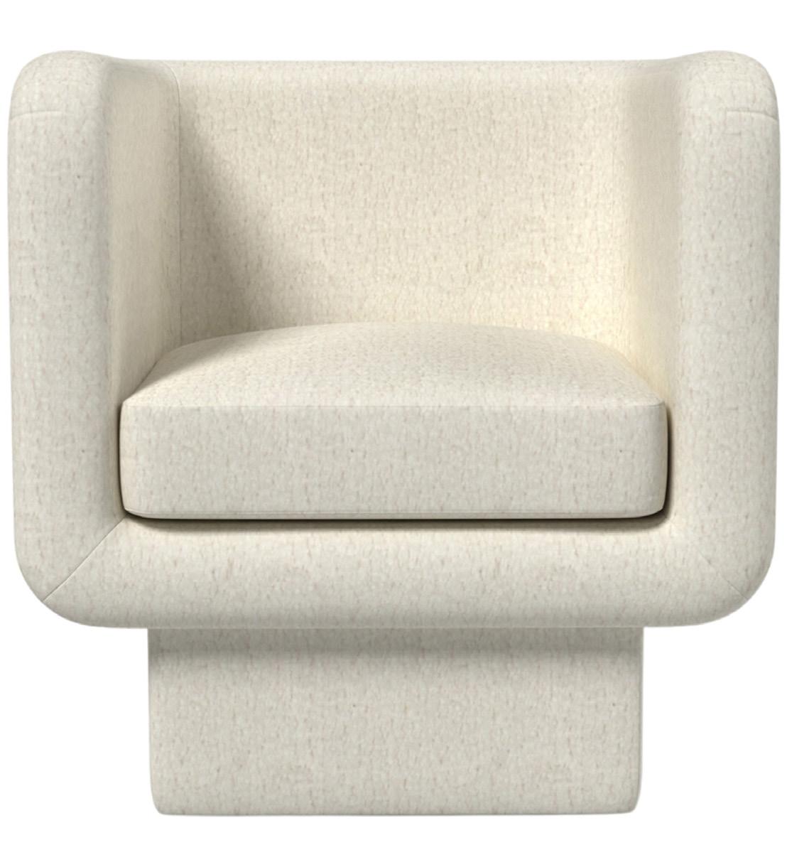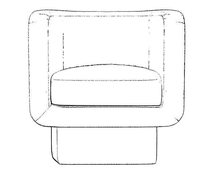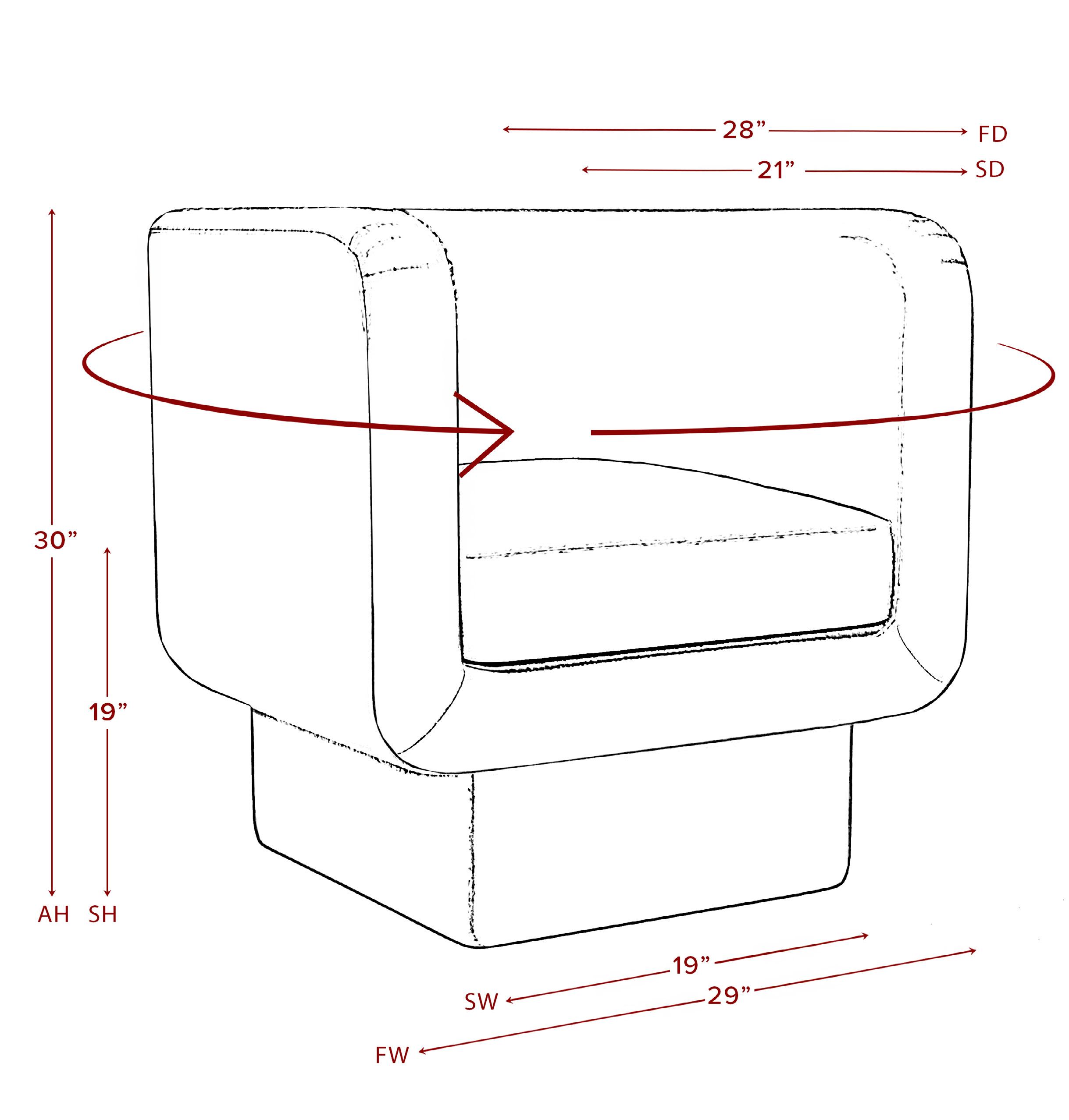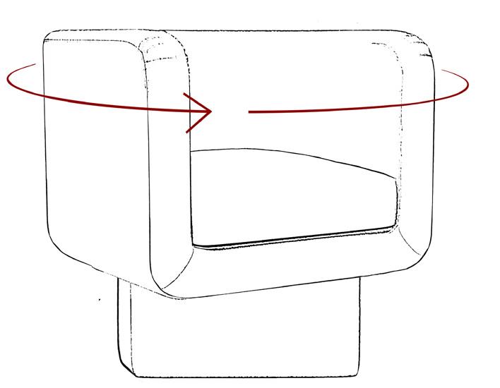Square back, boxy, swivel lounge chair in fabric of your choice