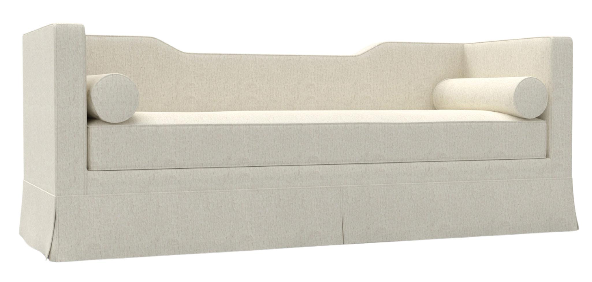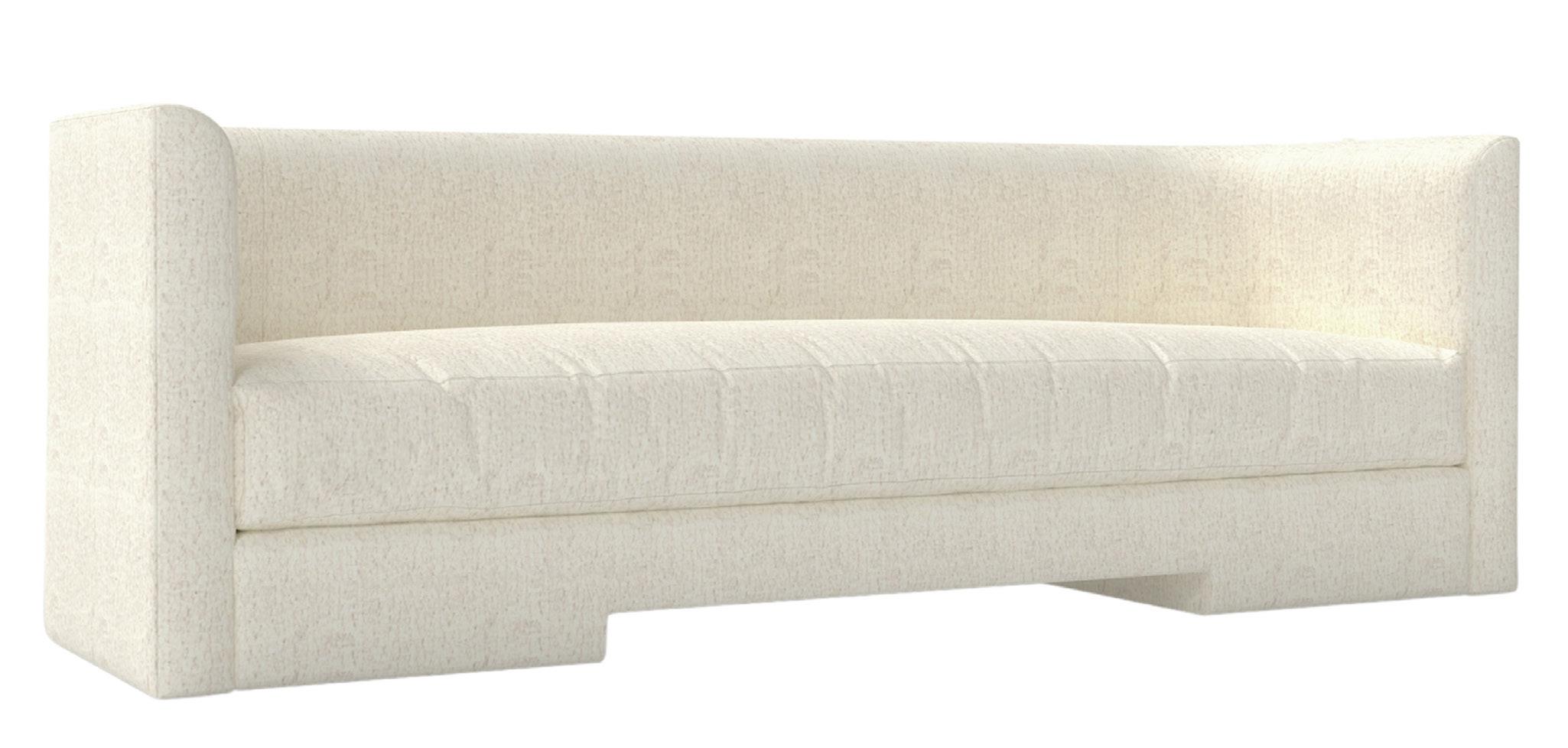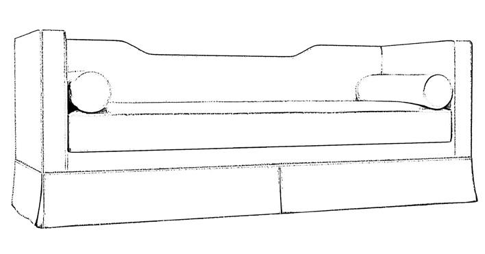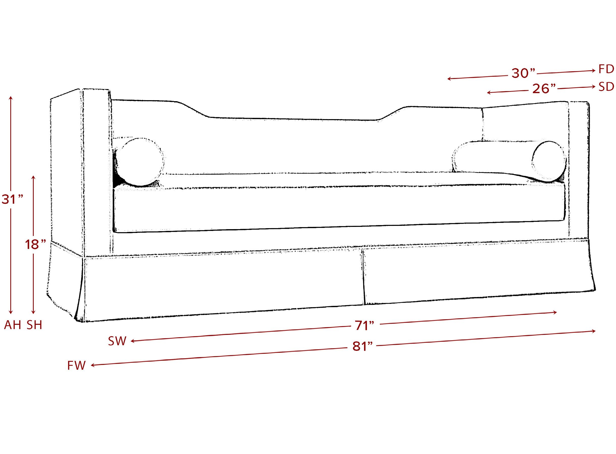 Skirted, tuxedo style sofa with notched back in fabric of your choice