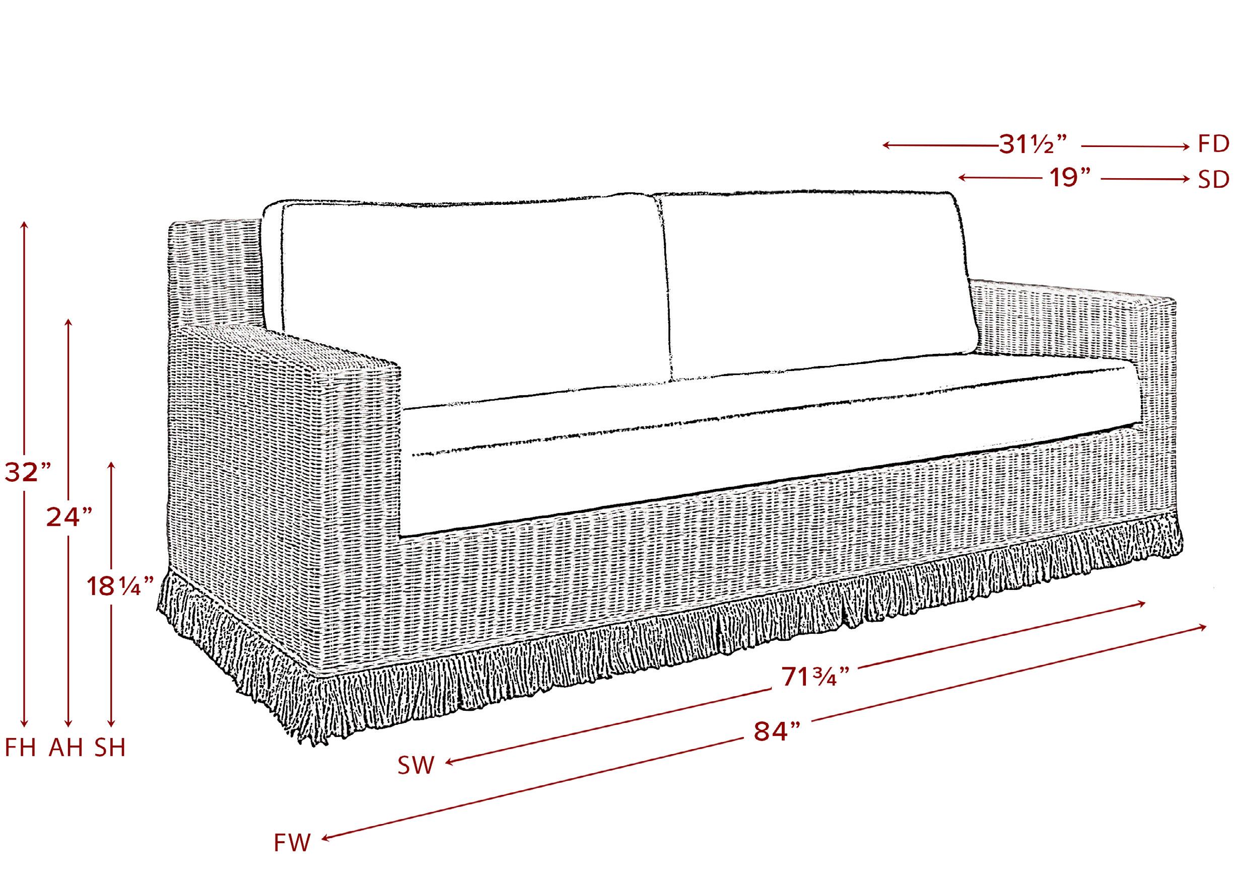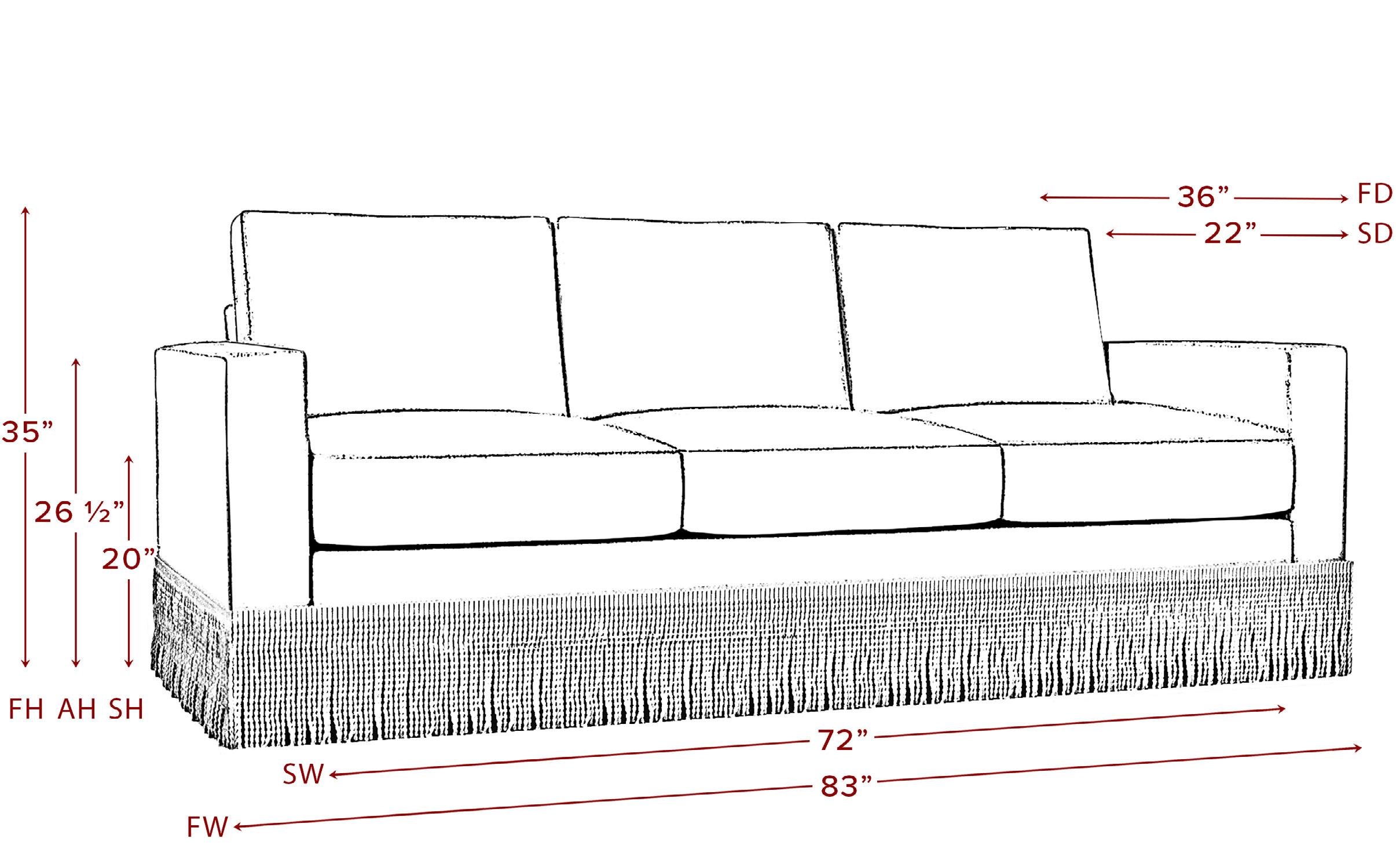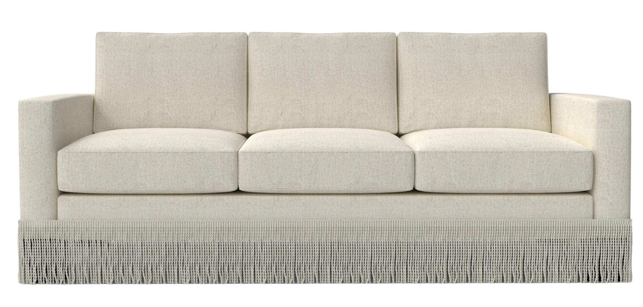 Lawson style sofa with ecru bullion fringe trim in fabric of your choice