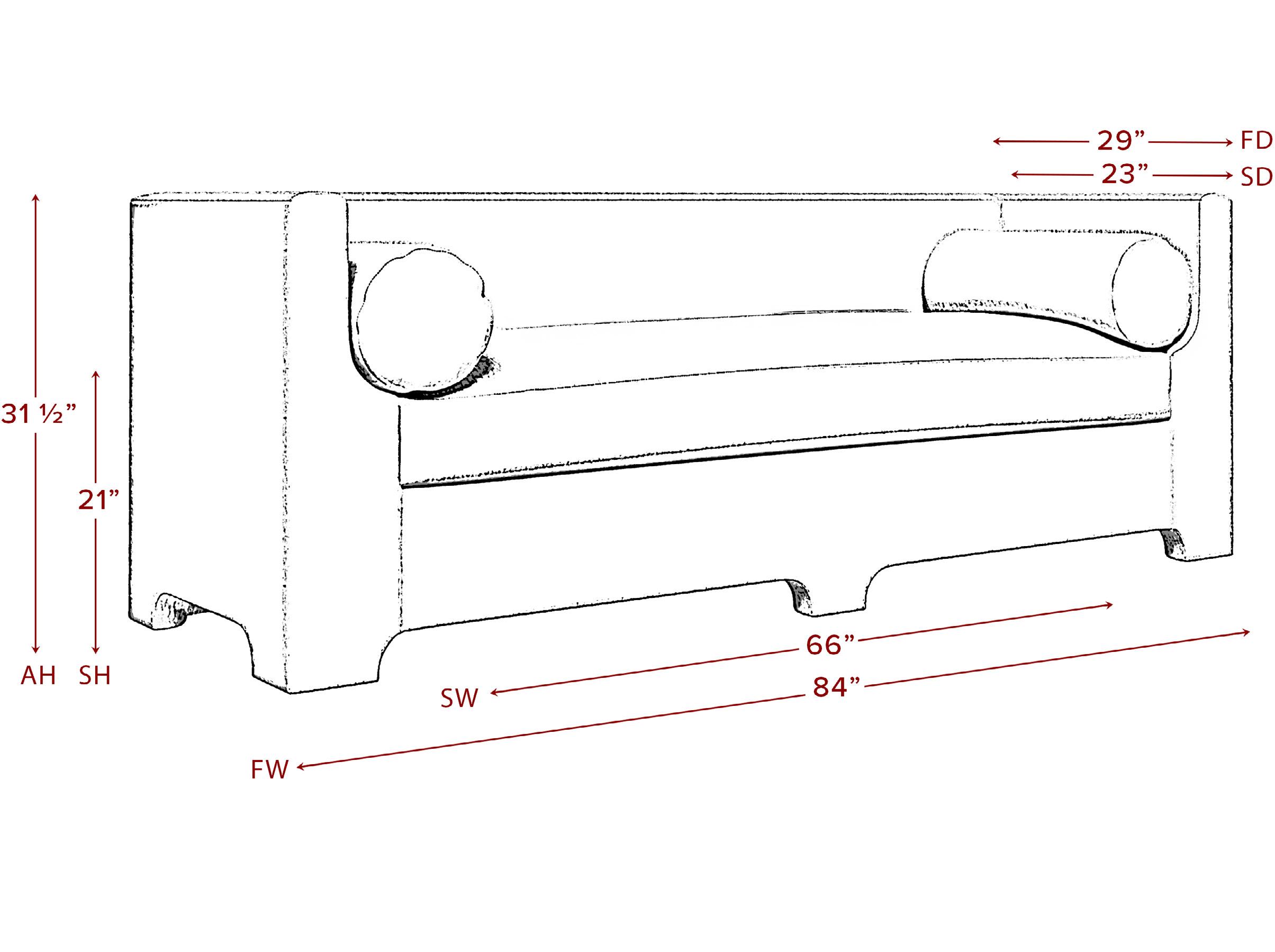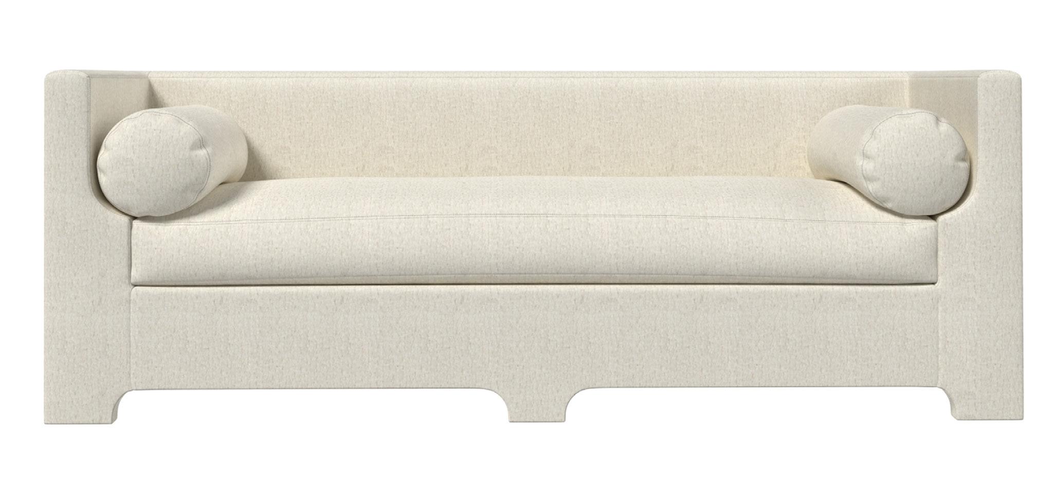 Tight back sofa with curved arm detail and bolster pillows in fabric of your choice