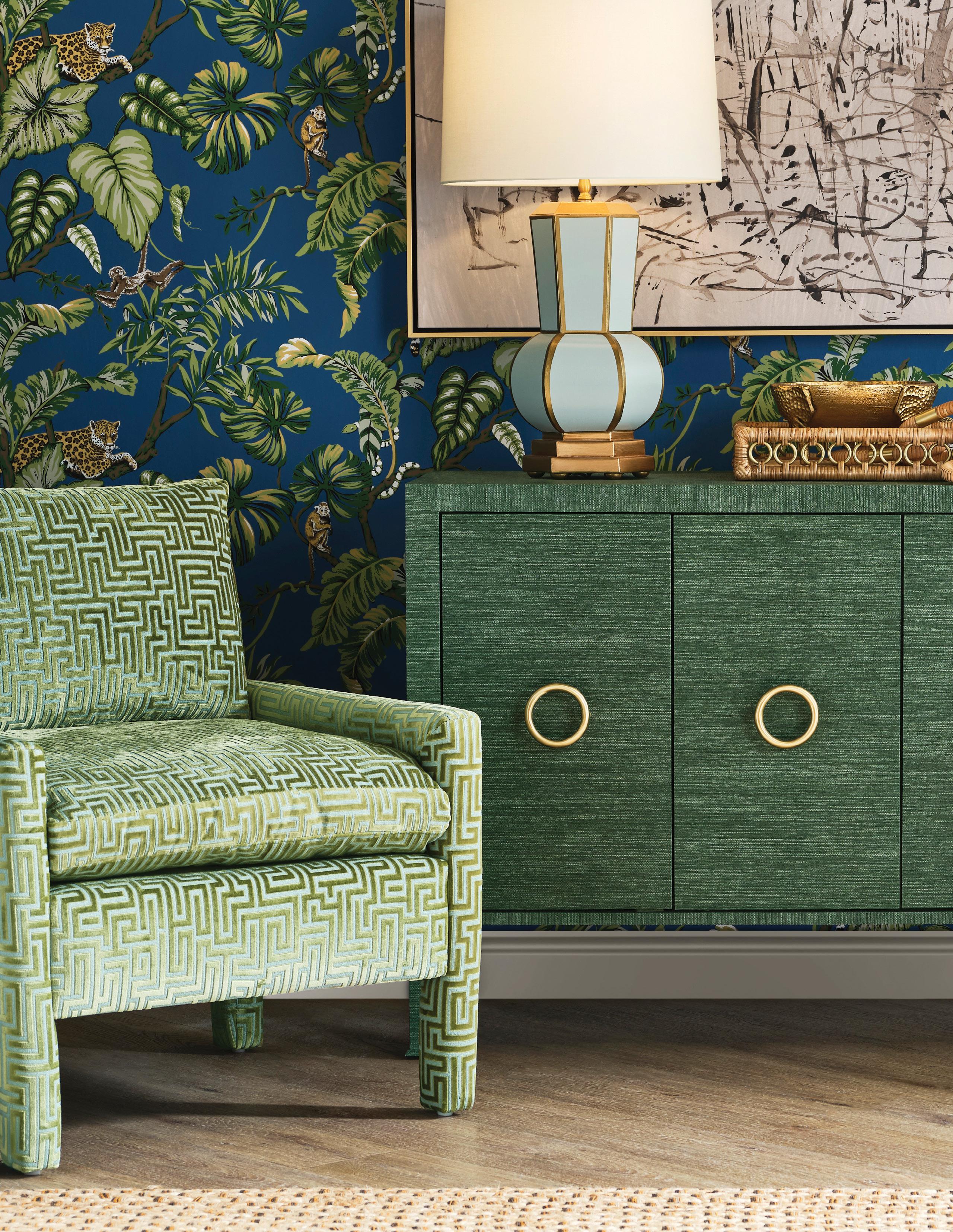 FEATURING Takoda Pendant, Catalina COM Table Lamp, Otto Decorative Chain, Elepha Bowl, Tango Tray, Rue GR Buffet, Brynn DULUTH GR Lounge Chair** *DULUTH GR fabric is part of our Custom Upholstery Program. Visit worlds-away.com to order custom upholstery pieces.