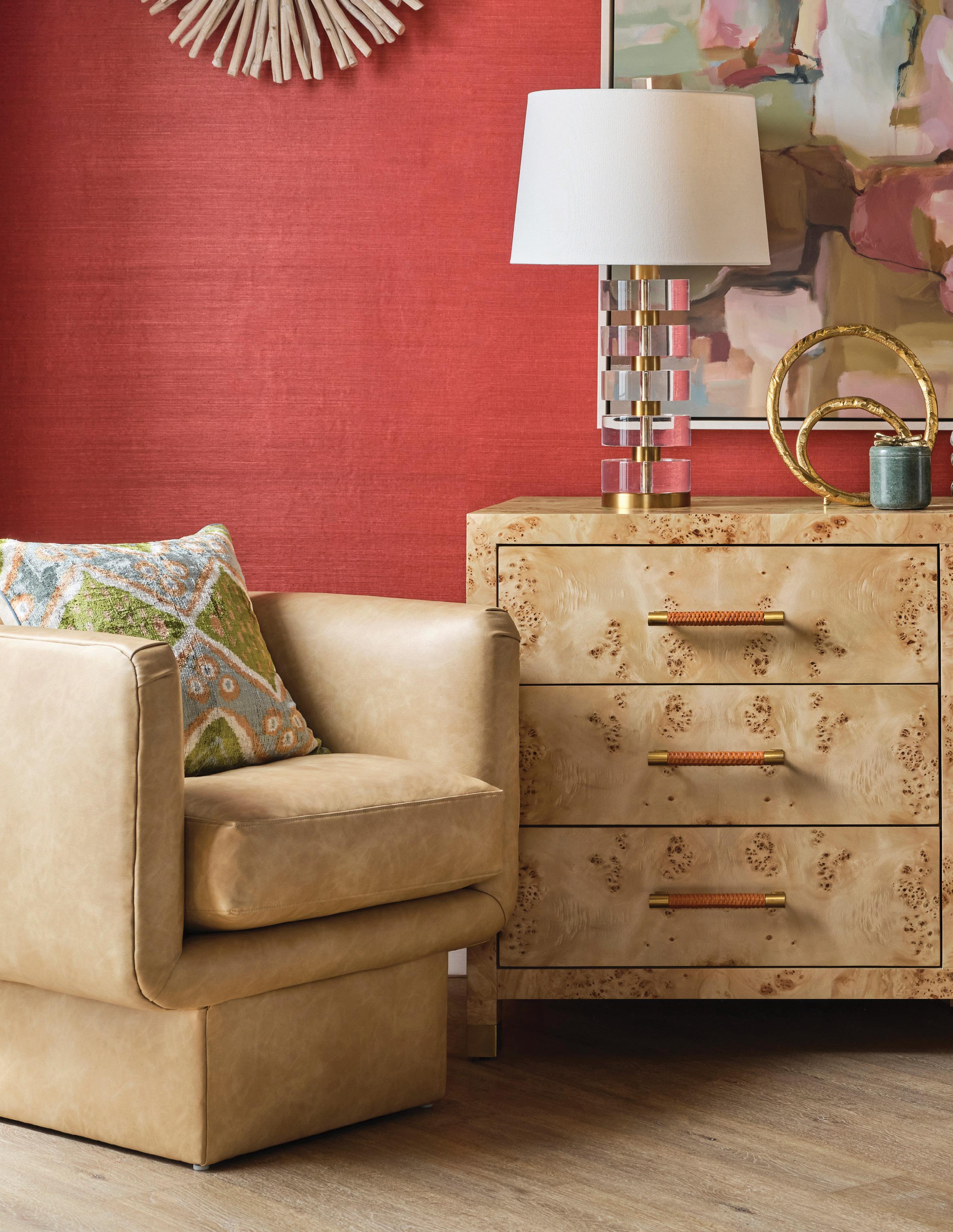 FEATURING Rio SM Sconce, Cybill BBR Table Lamp, Winchester BW Chest, Orin Sculpture, Alba SM Box, Alba LG Box, Darner Container, Estie FAIRFAX ND Barrel Chair*