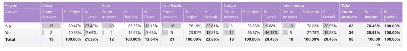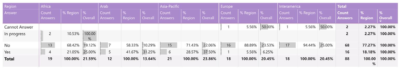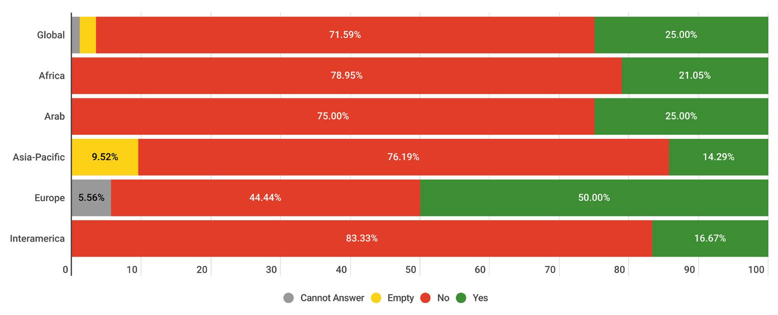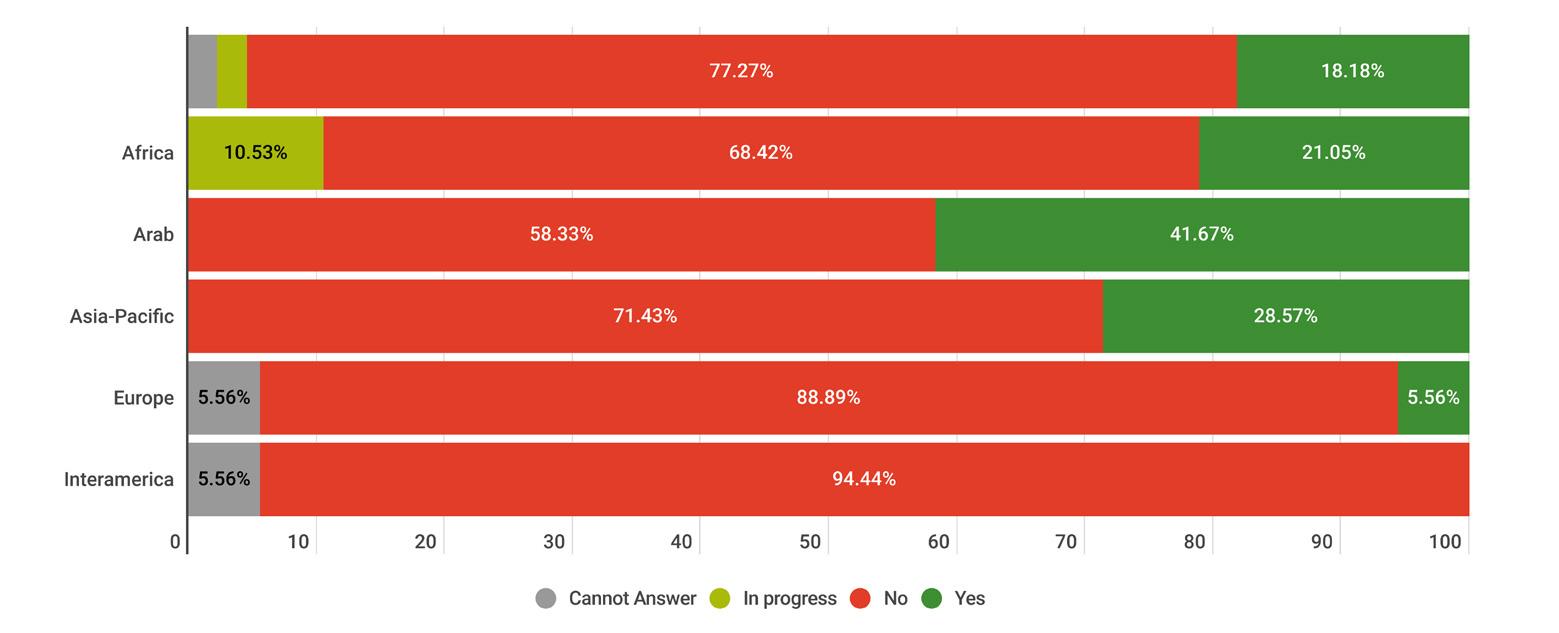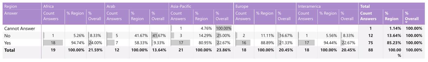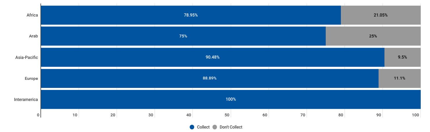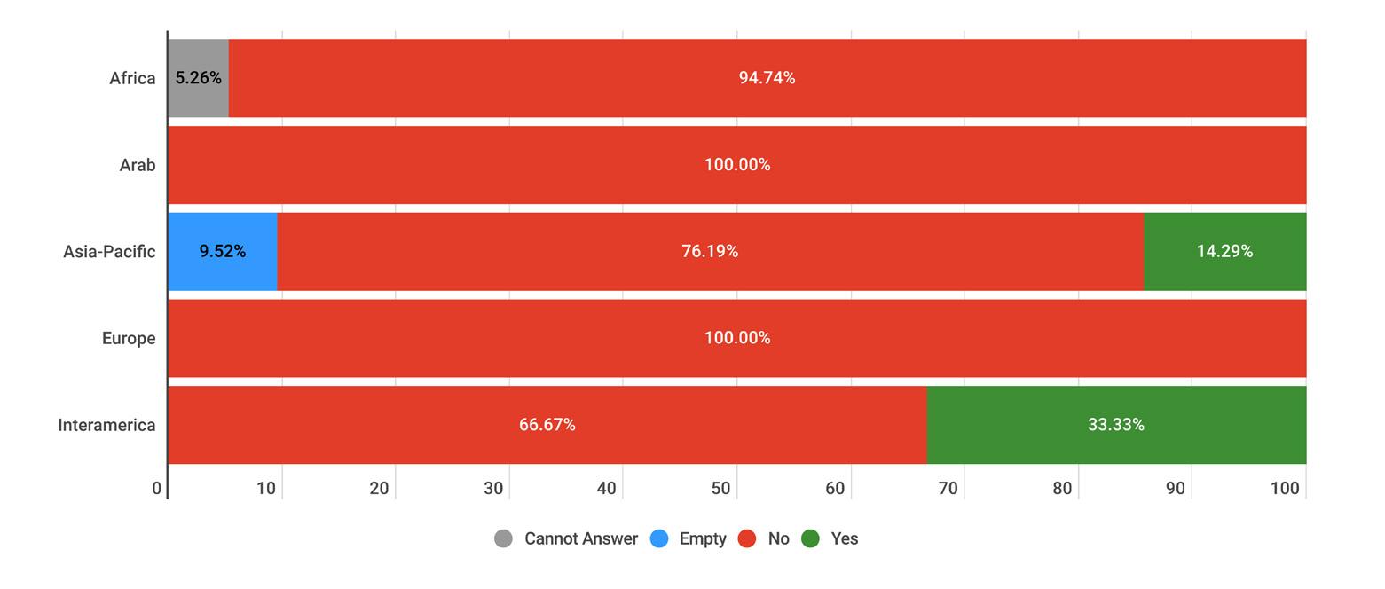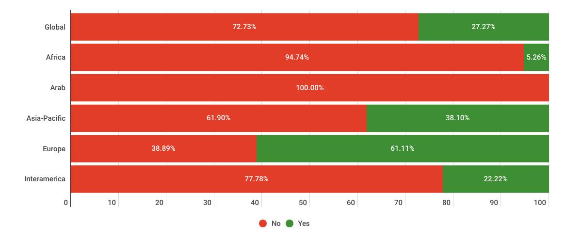 While reading through the report, please note that if we don’t have data by region from the surveyed NSOs, the tables accompanying the graphics will display a blank space, indicating zero responses and therefore 0.00%.