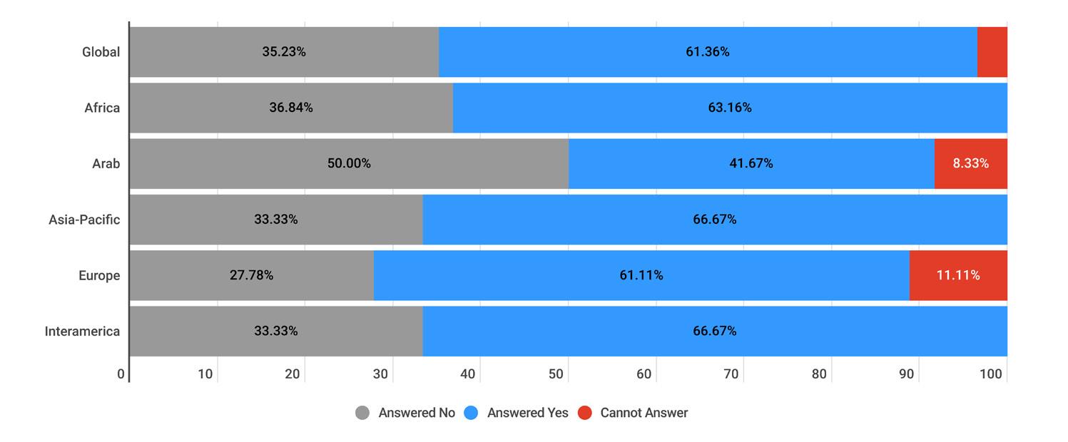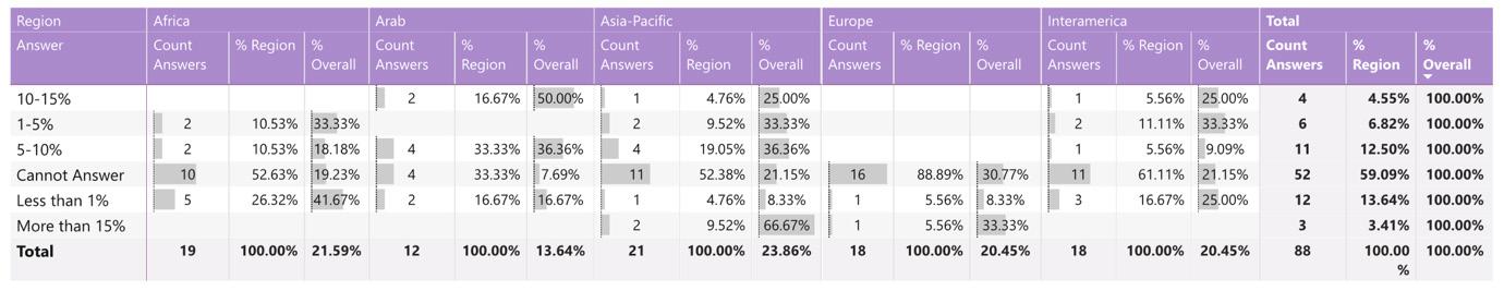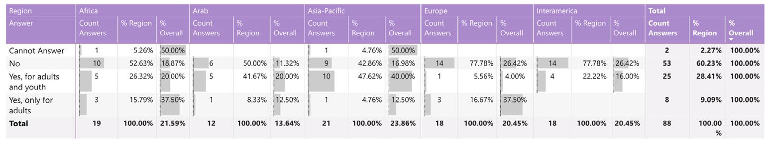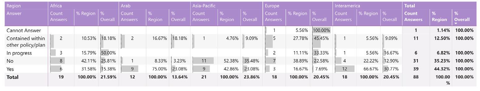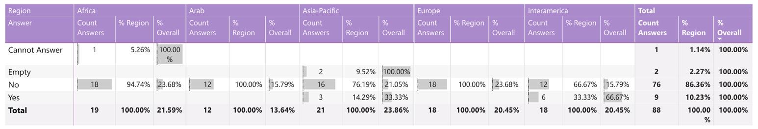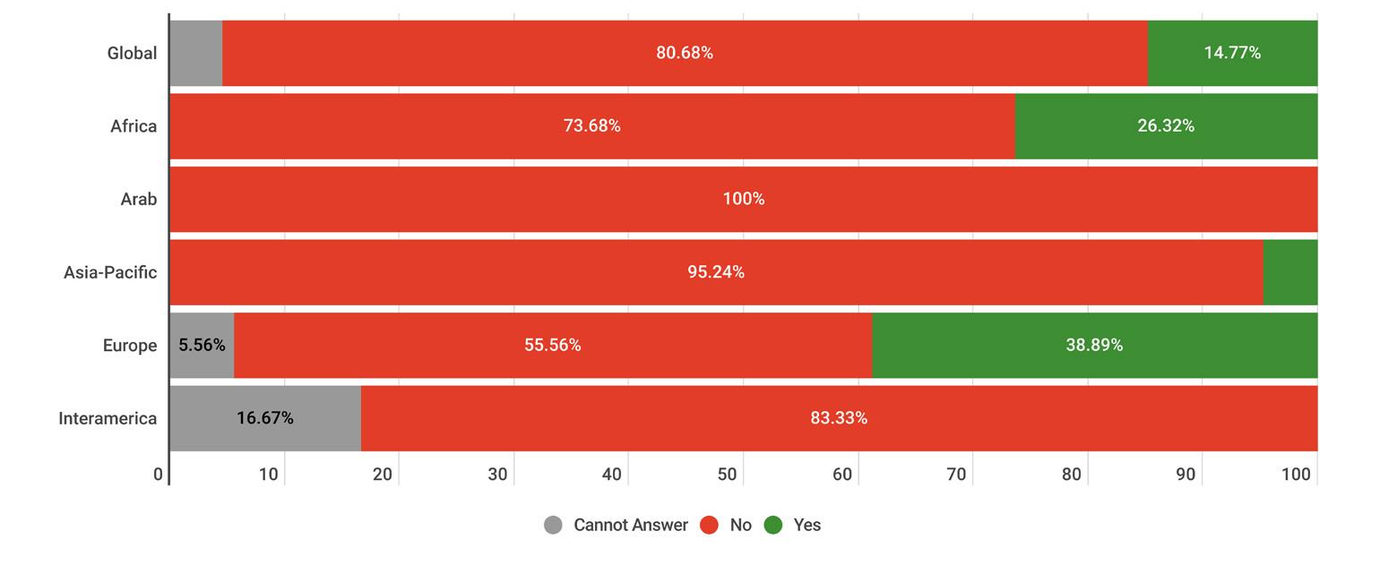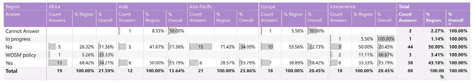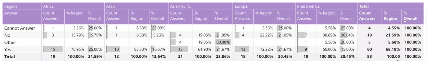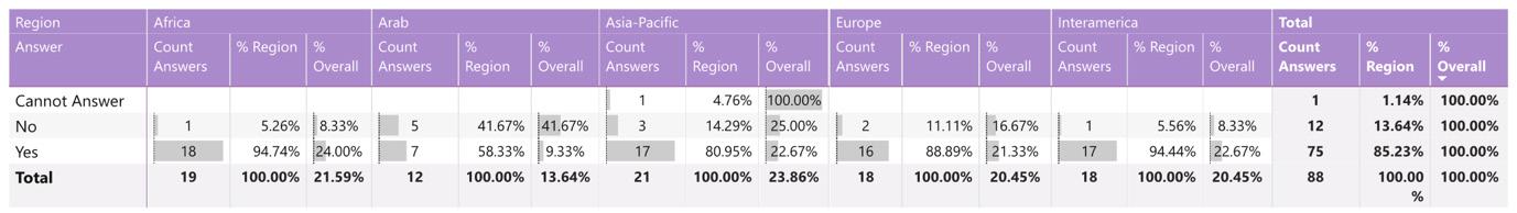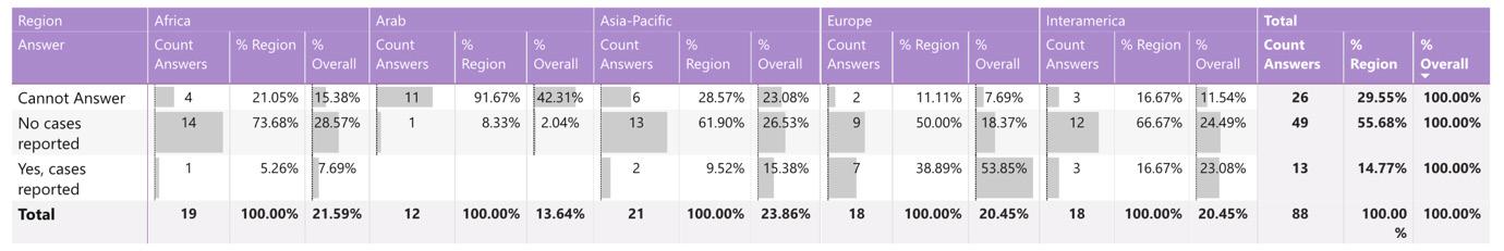 While reading through the report, please note that if we don’t have data by region from the surveyed NSOs, the tables accompanying the graphics will display a blank space, indicating zero responses and therefore 0.00%.