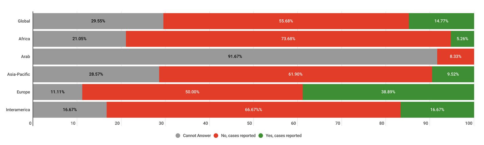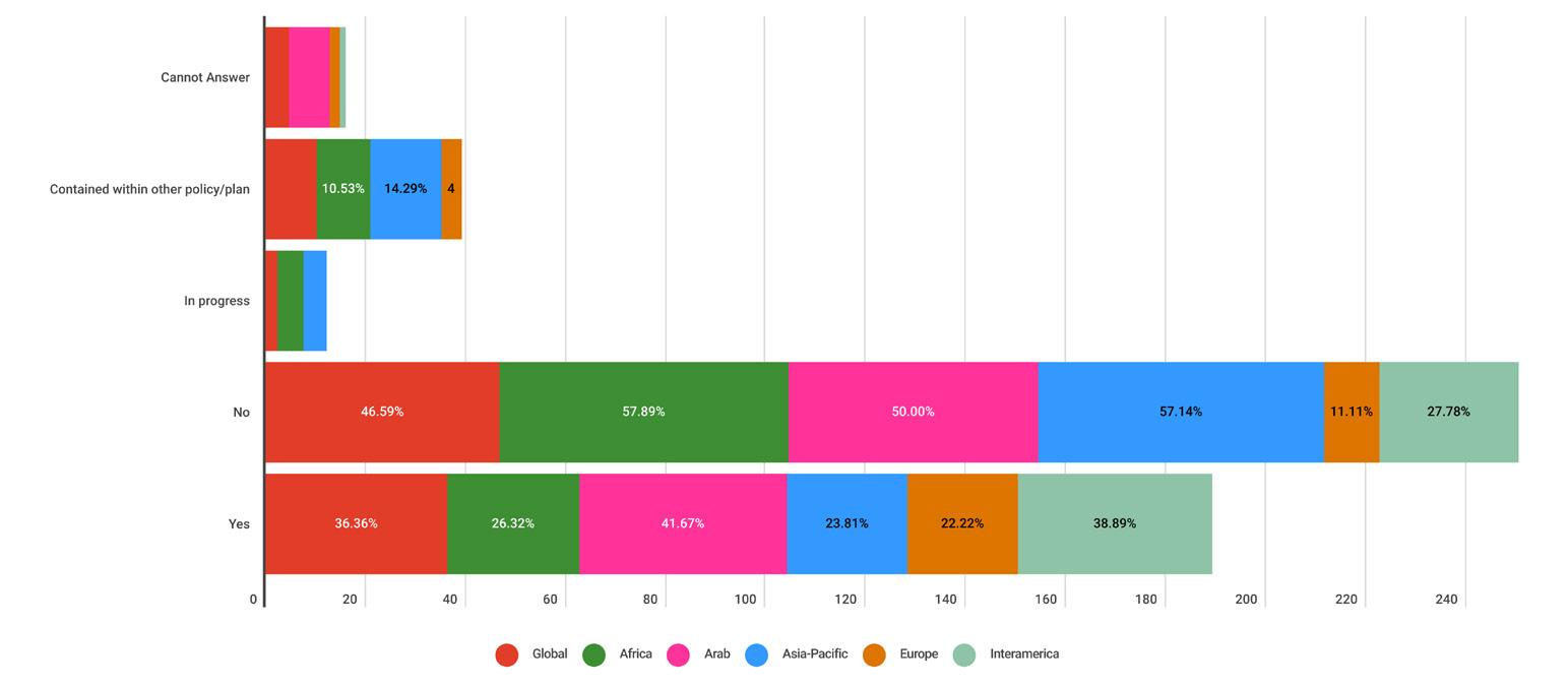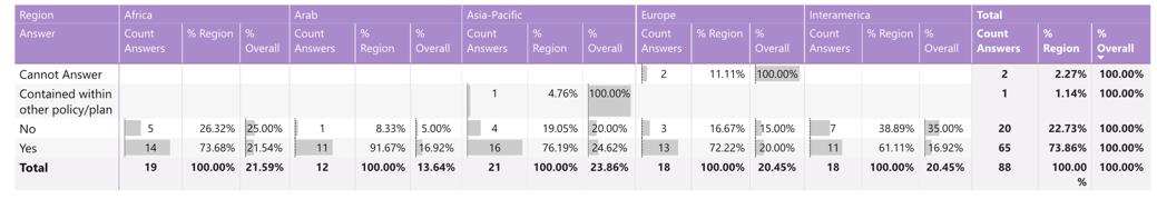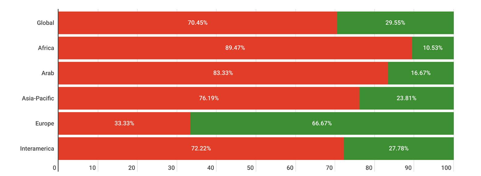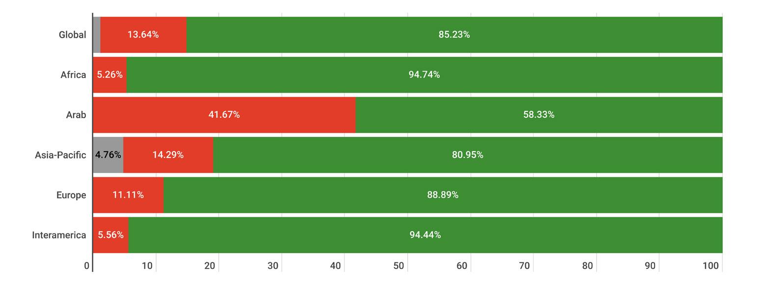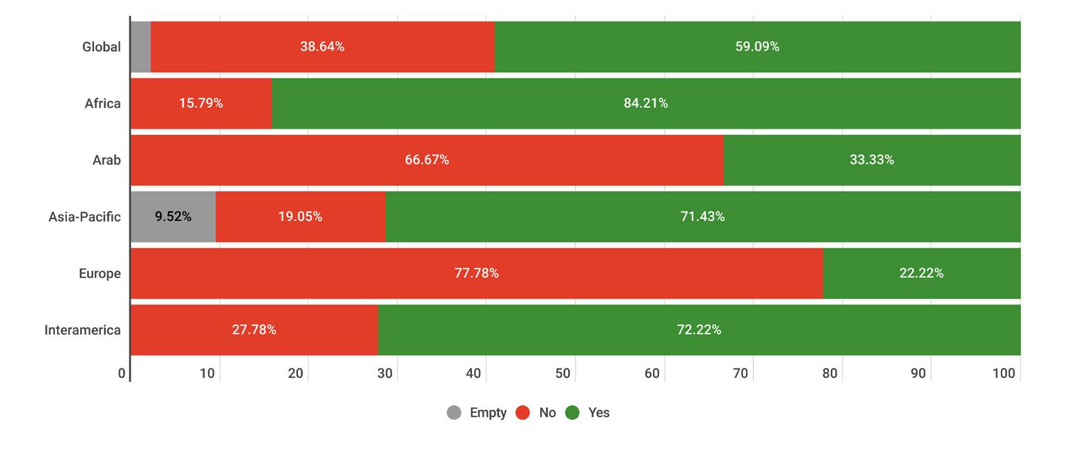 While reading through the report, please note that if we don’t have data by region from the surveyed NSOs, the tables accompanying the graphics will display a blank space, indicating zero responses and therefore 0.00%.