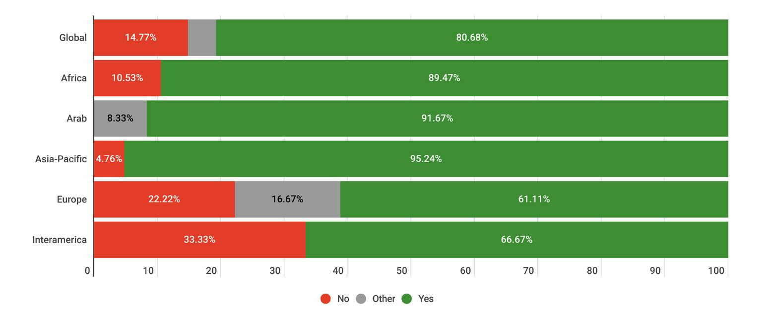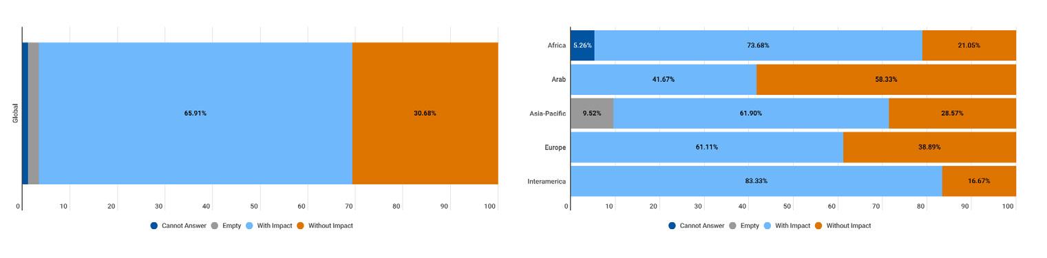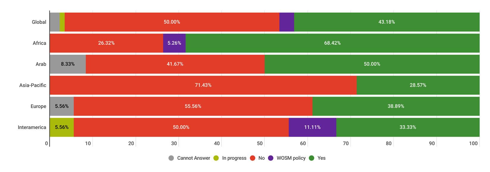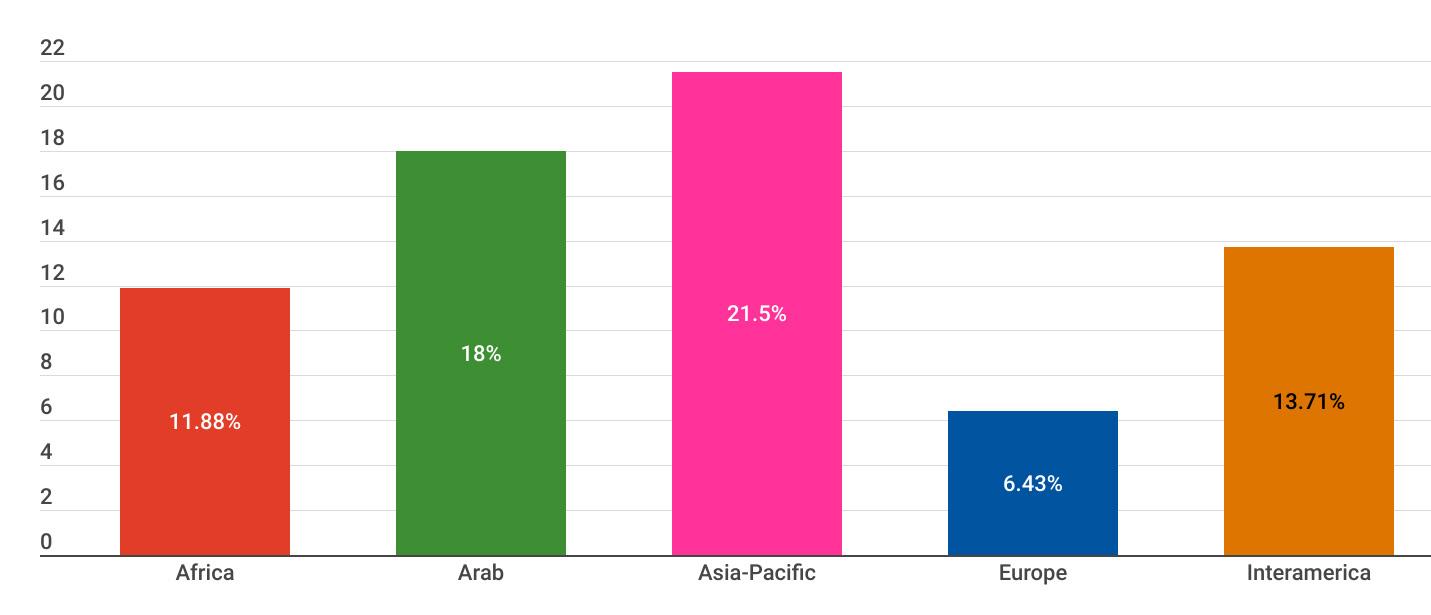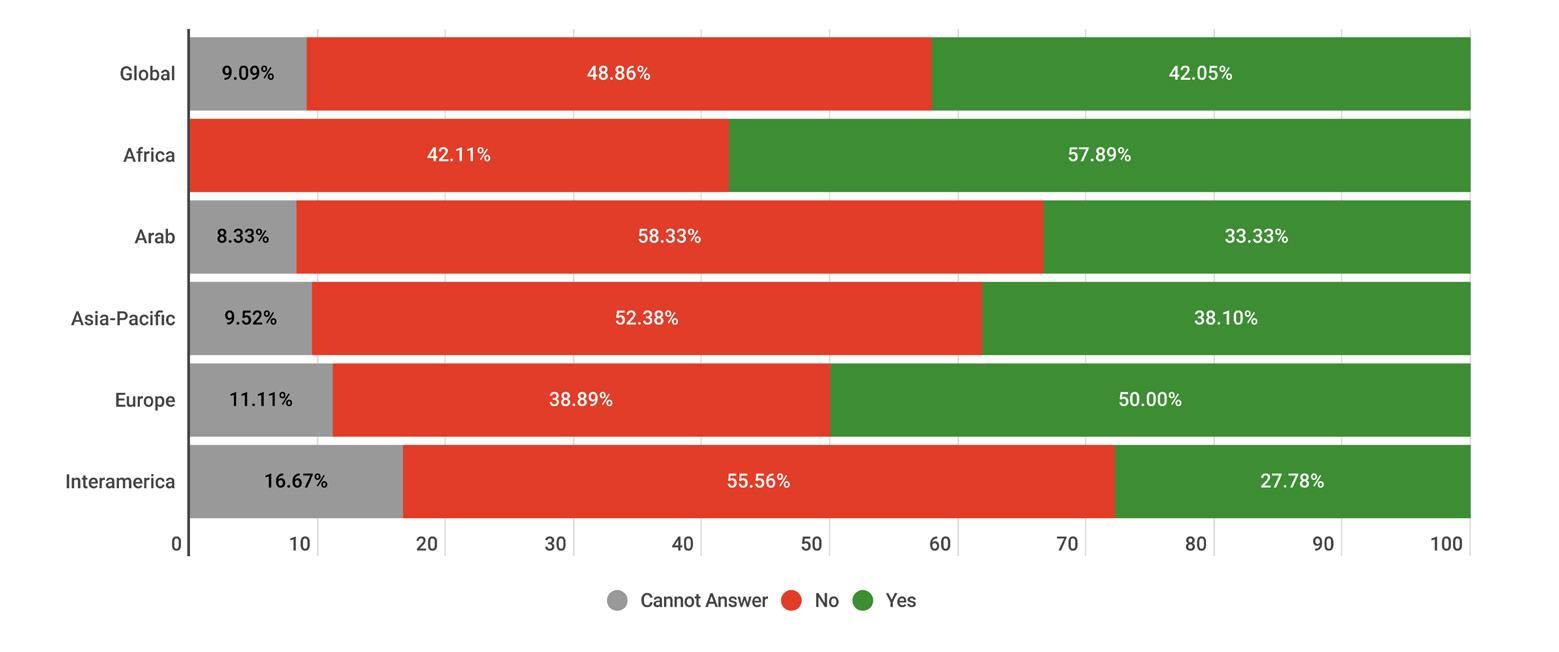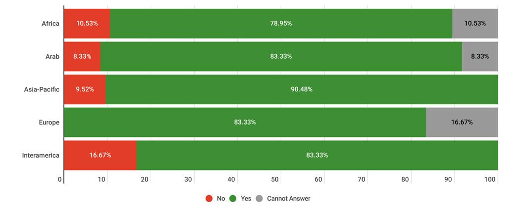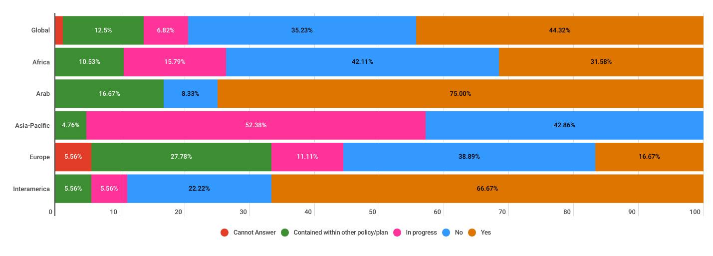 While reading through the report, please note that if we don’t have data by region from the surveyed NSOs, the tables accompanying the graphics will display a blank space, indicating zero responses and therefore 0.00%.