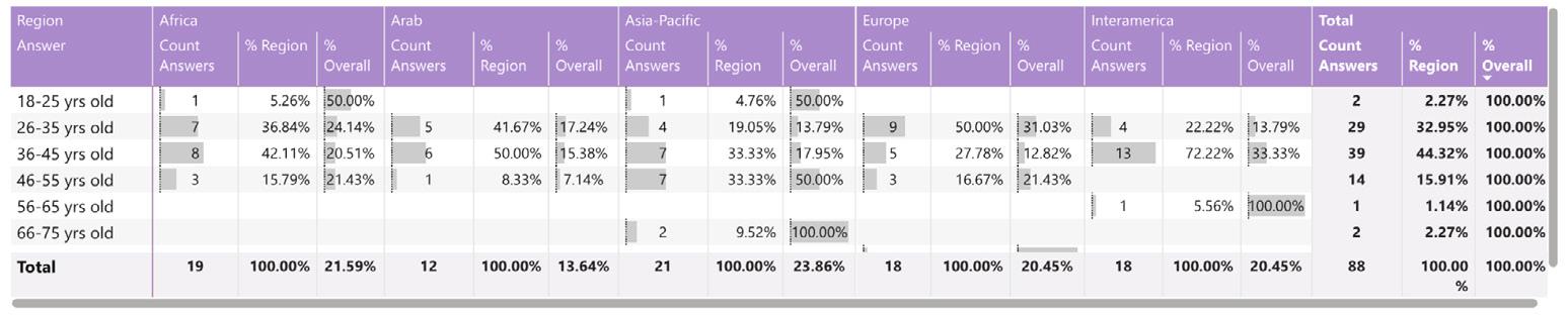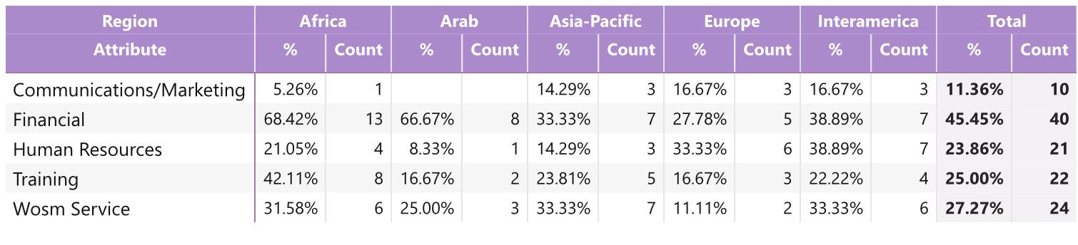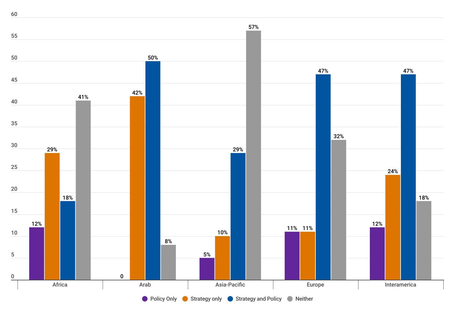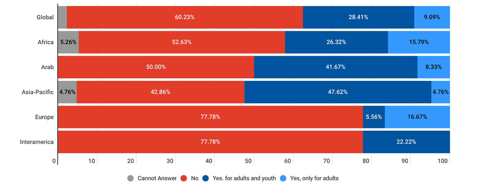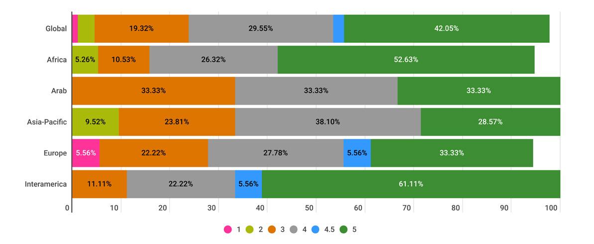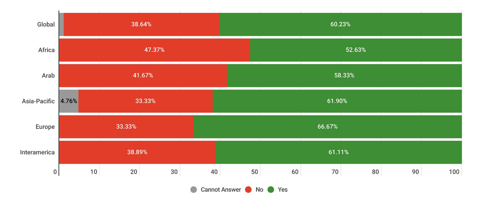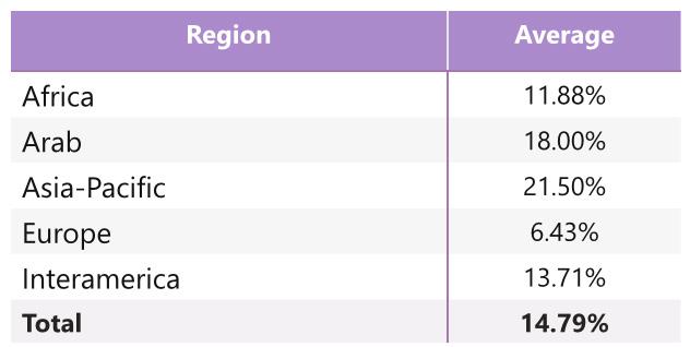 While reading through the report, please note that if we don’t have data by region from the surveyed NSOs, the tables accompanying the graphics will display a blank space, indicating zero responses and therefore 0.00%.