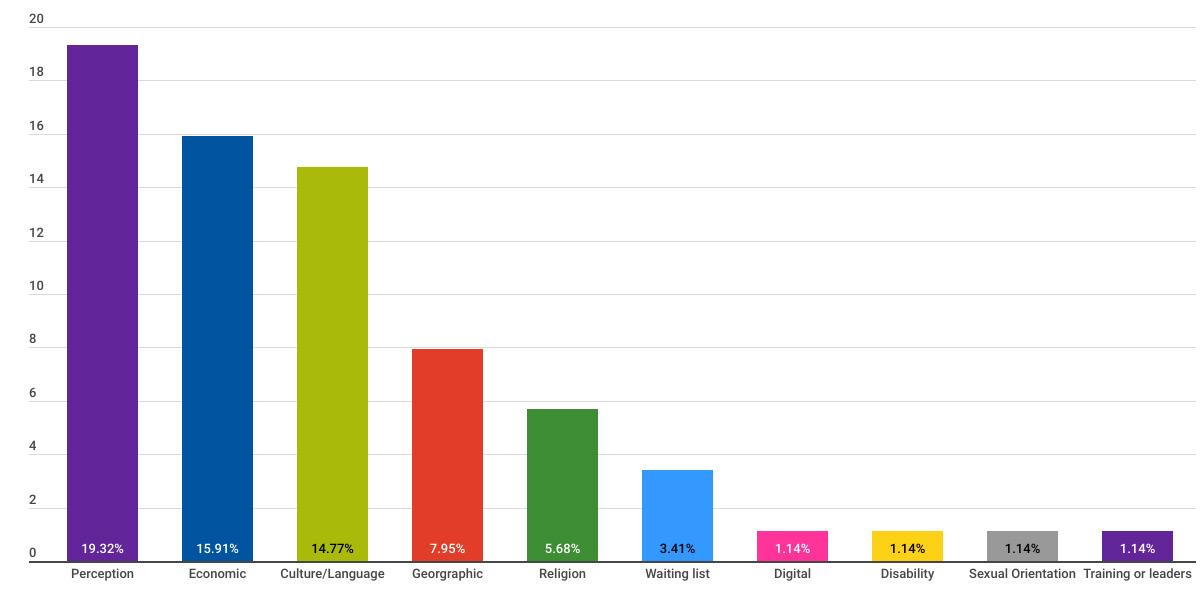 Figure 5: Public perception of inclusion of the following dimensions prevents a challenge/barrier to those joining Scouting in your organisation.