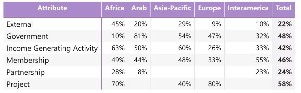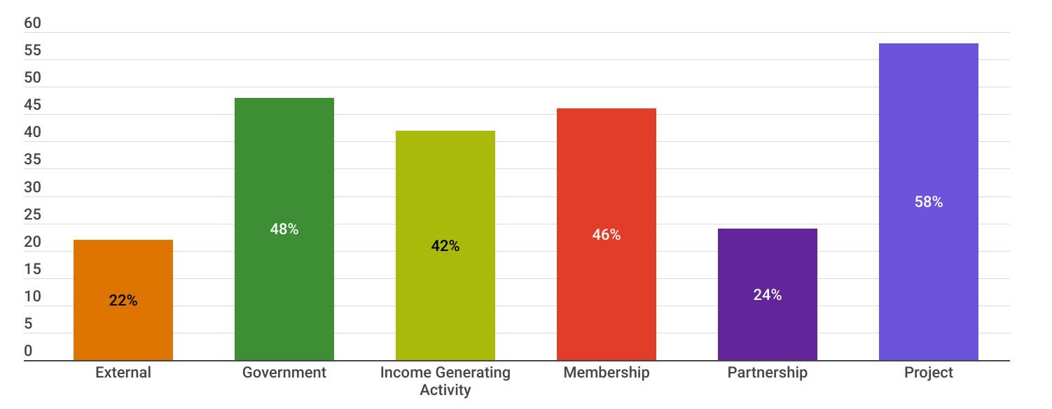 13. How is the income or funding of the Member Organization split by type? For example, the percentage of income made up by membership fees, government funding, external funding, and partnerships.