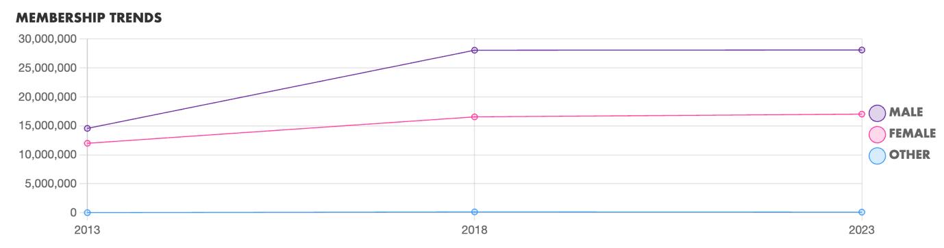 33. What is the gender ratio of the Member Organization? Does it reflect the gender makeup of the country? Note: Please also explore growth for this question.