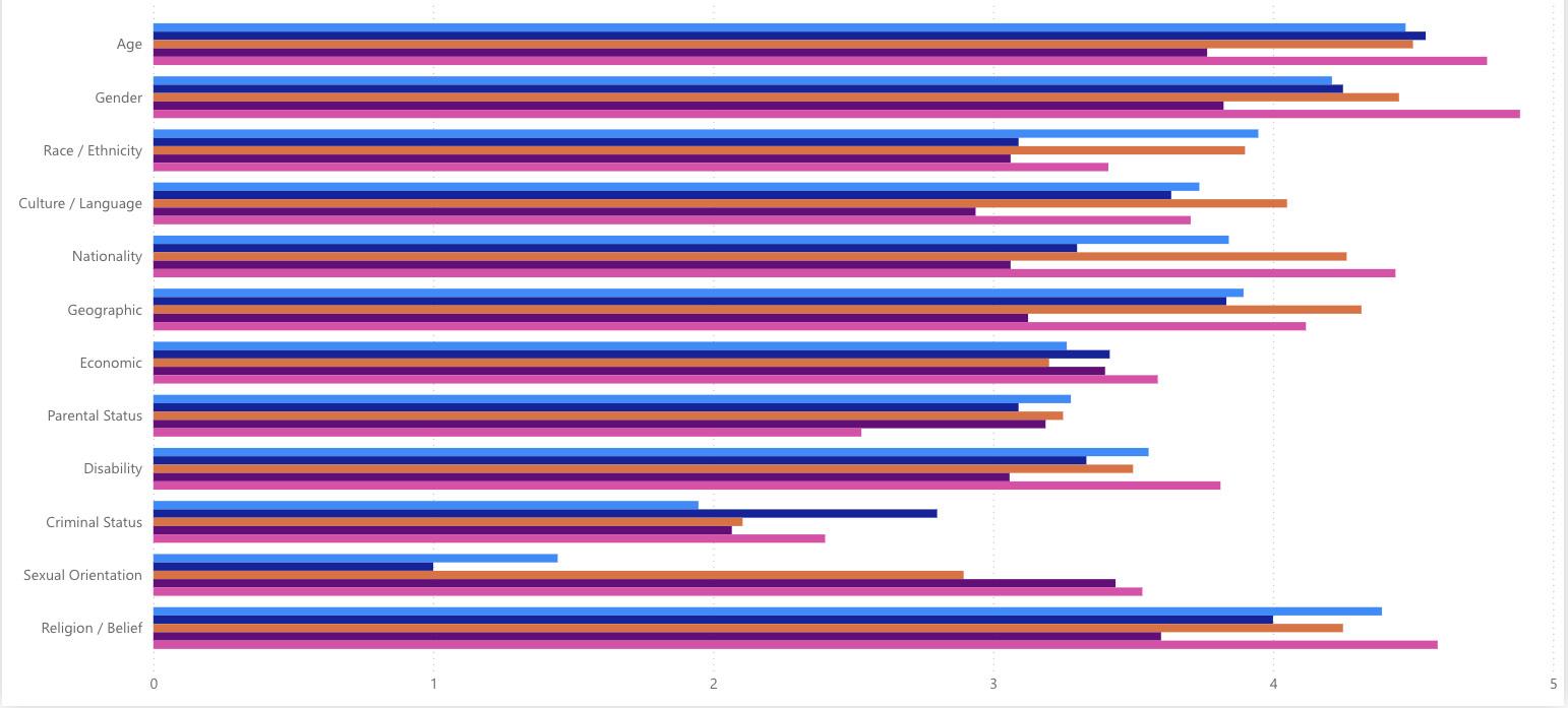 Key findings across 14 diversity and inclusion dimensions: