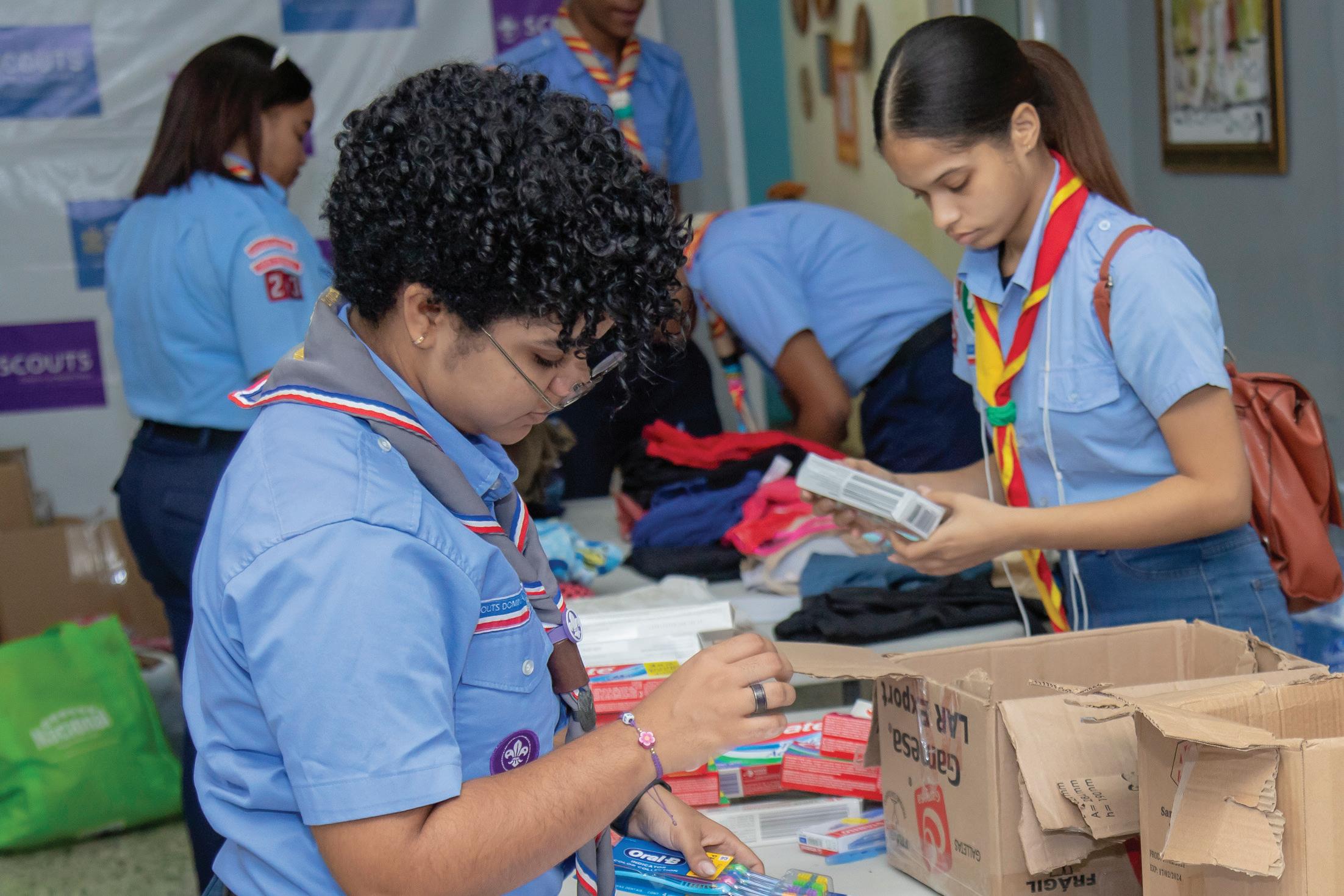 Scouts Dominicanos en acción humanitaria como respuesta al Huracán Fiona.