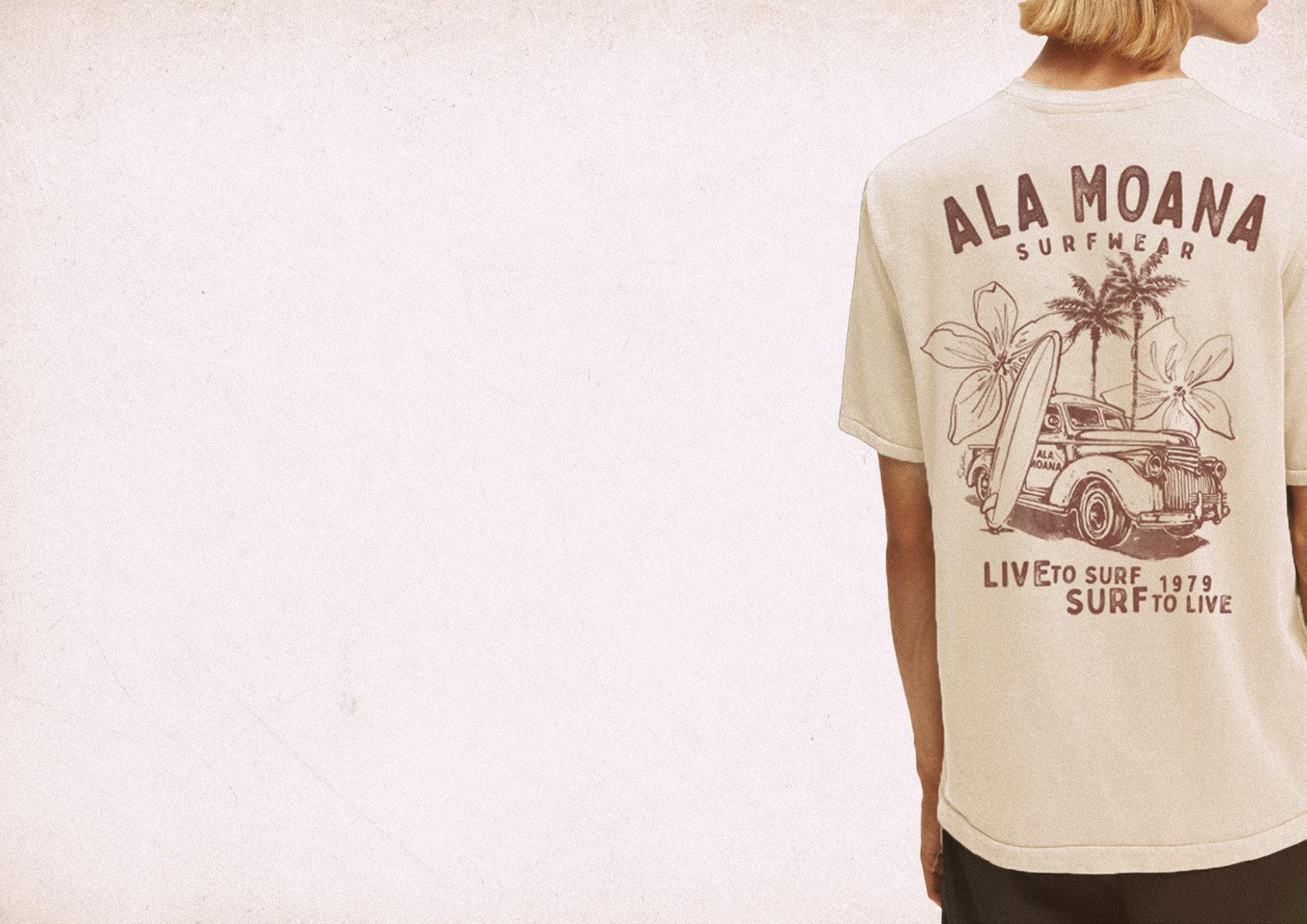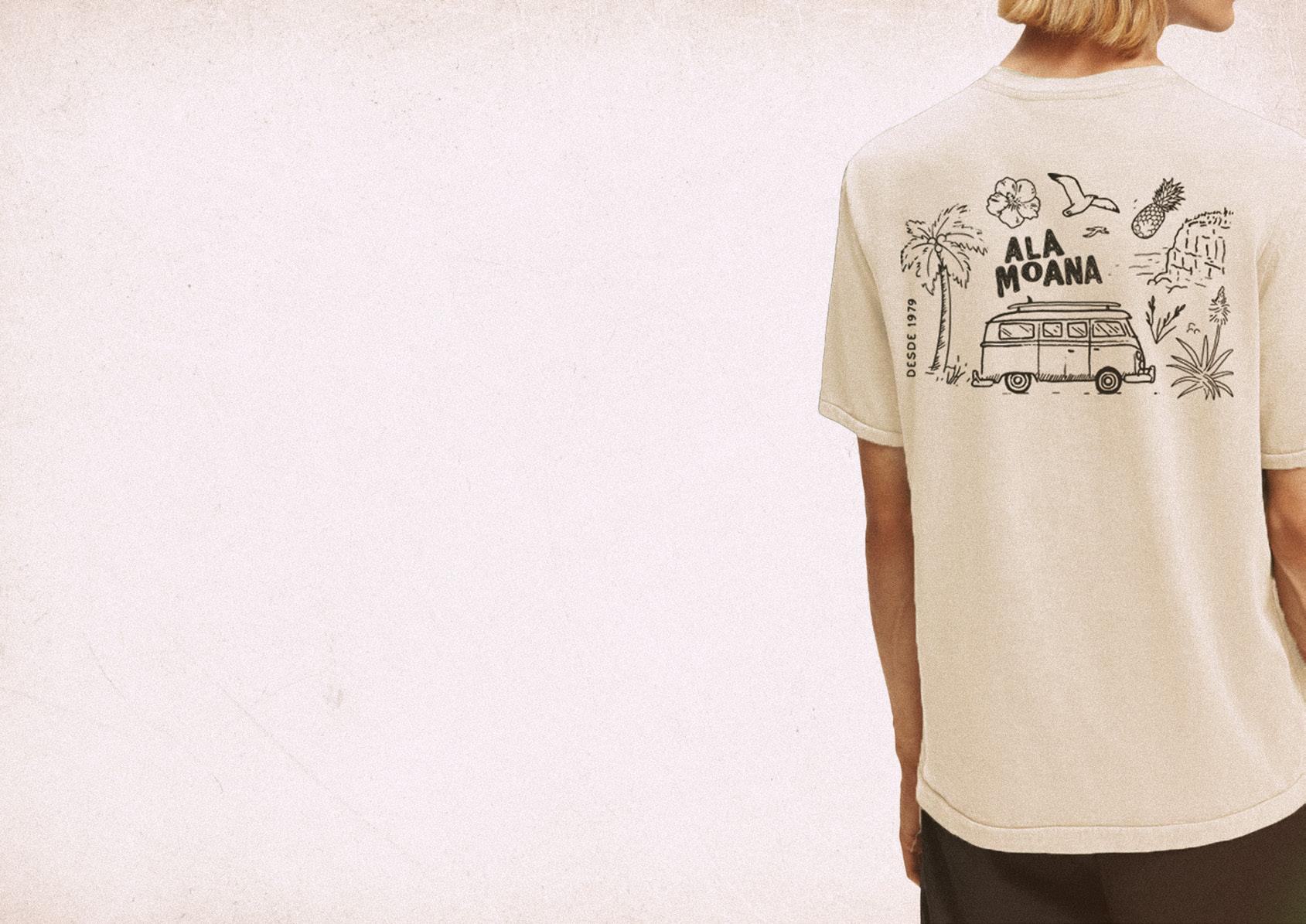 Jersey 24/1 - 100% Algodón. Remera manga corta con lavado mal tinto y enzimatico. Estampa en delantero y en espalda. Grifa tejida en manga. Regular fit