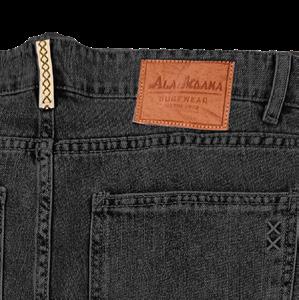 Denim 100% Algodón. Bermuda de denim negro al corte. Botón metálico personalizado. Badana de PU en espalda. Parche bordado en presilla. Bordado en bolsillo.