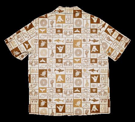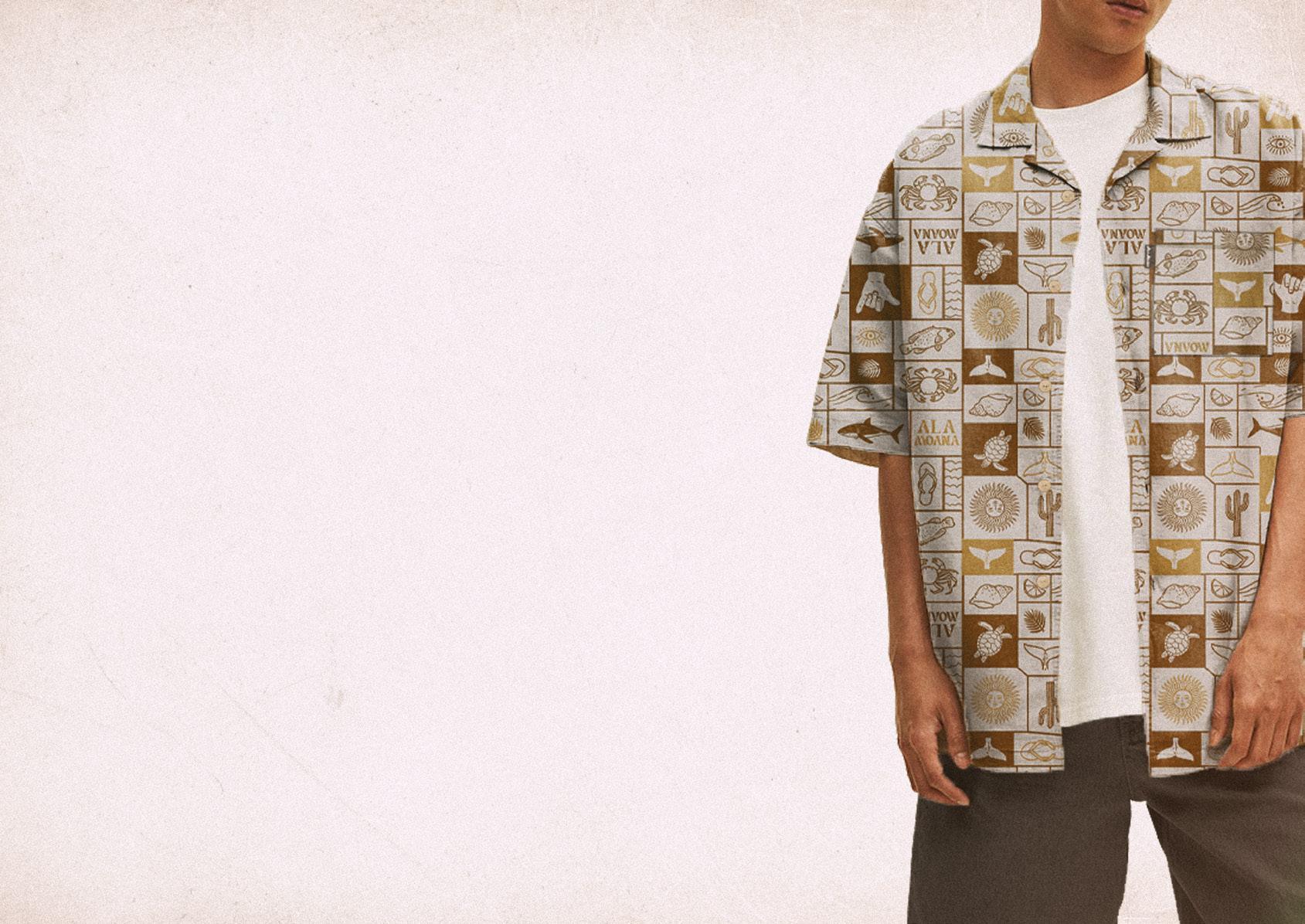 Poplín 100% Algodón. Camisa manga corta estampada con bolsillo plaqué en delantero. Grifa tejida en bolsillo. Botones marmolados. Regultar fit.