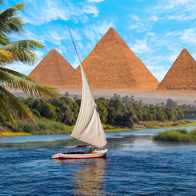 Stand in the shadow of the great Sphinx and wondrous Pyramids at Giza, fly to Aswan, cruise the Nile River, visit Ancient Egyptian tombs, the Valley of the Kings, and fly to Cairo to explore the exciting chaos of this modern Egyptian city.