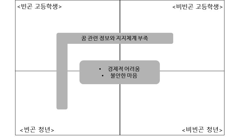 빈곤 청년들에게 경제적 어려움은 꿈의 장애물이 된다. 기숙사비와 학비, 학원비 마련을 위 한 아르바이트로 인해 꿈을 준비할 시간이 부족하였다. 아르바이트를 하지 않고 공부만 하면