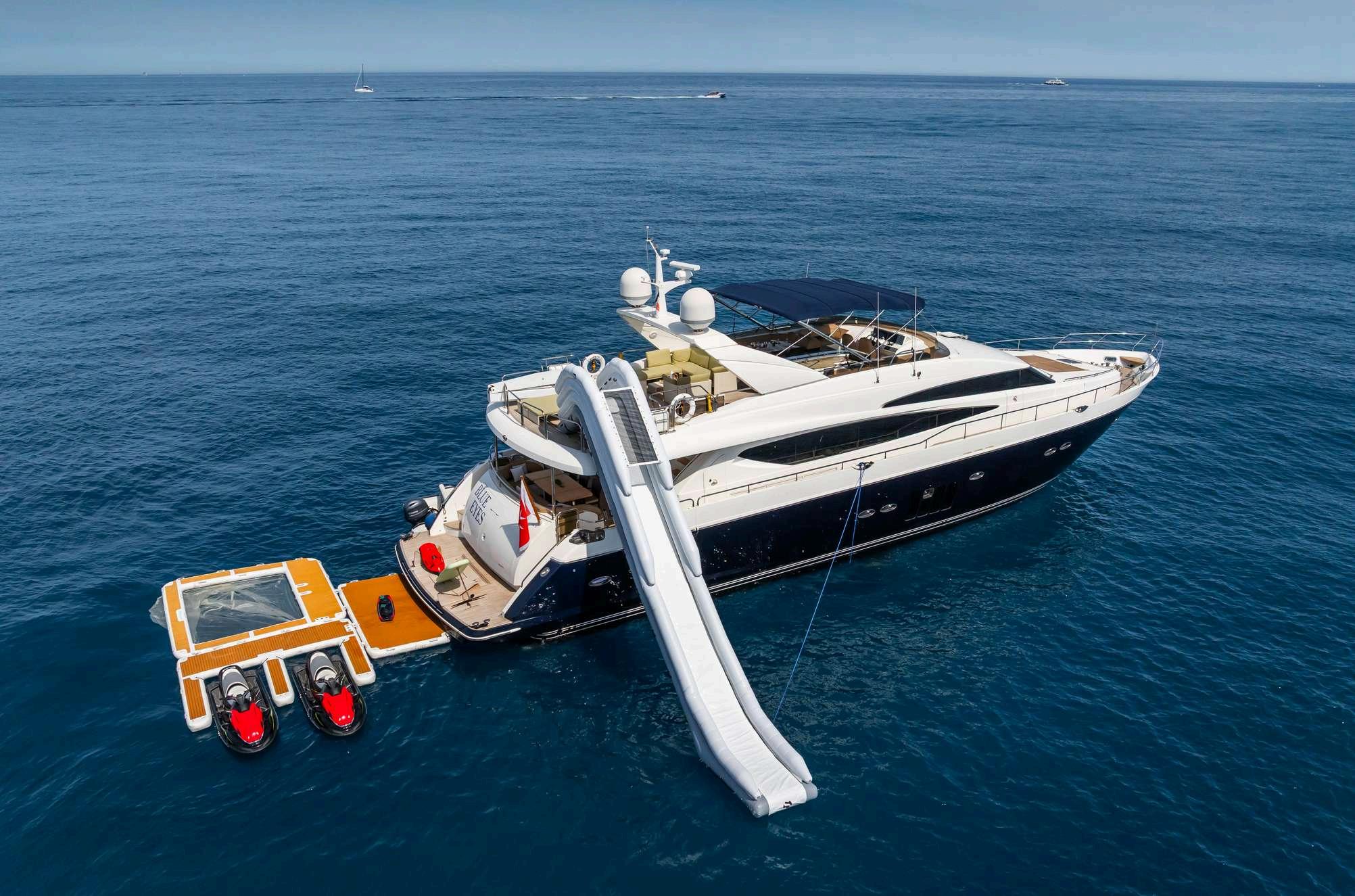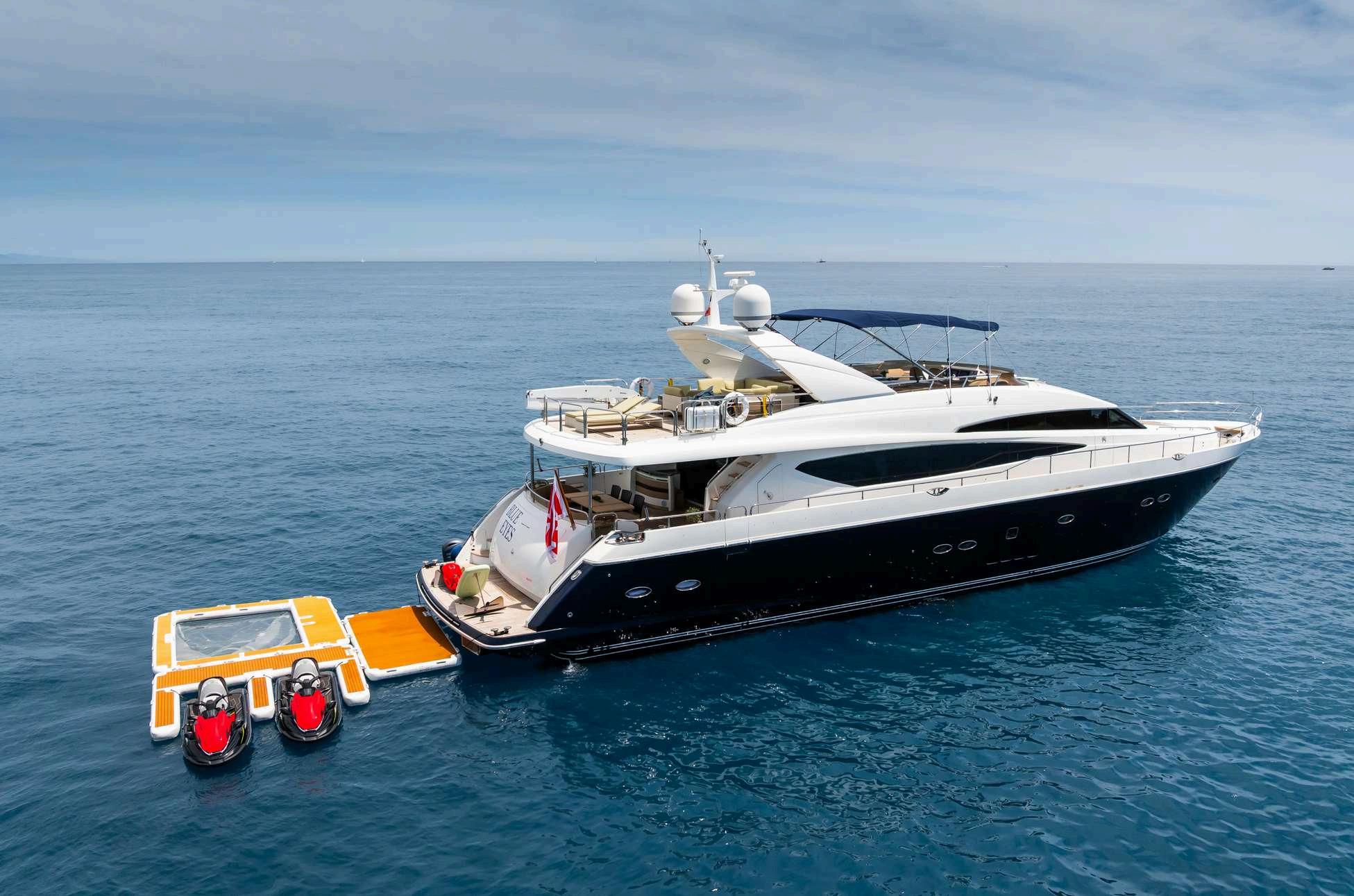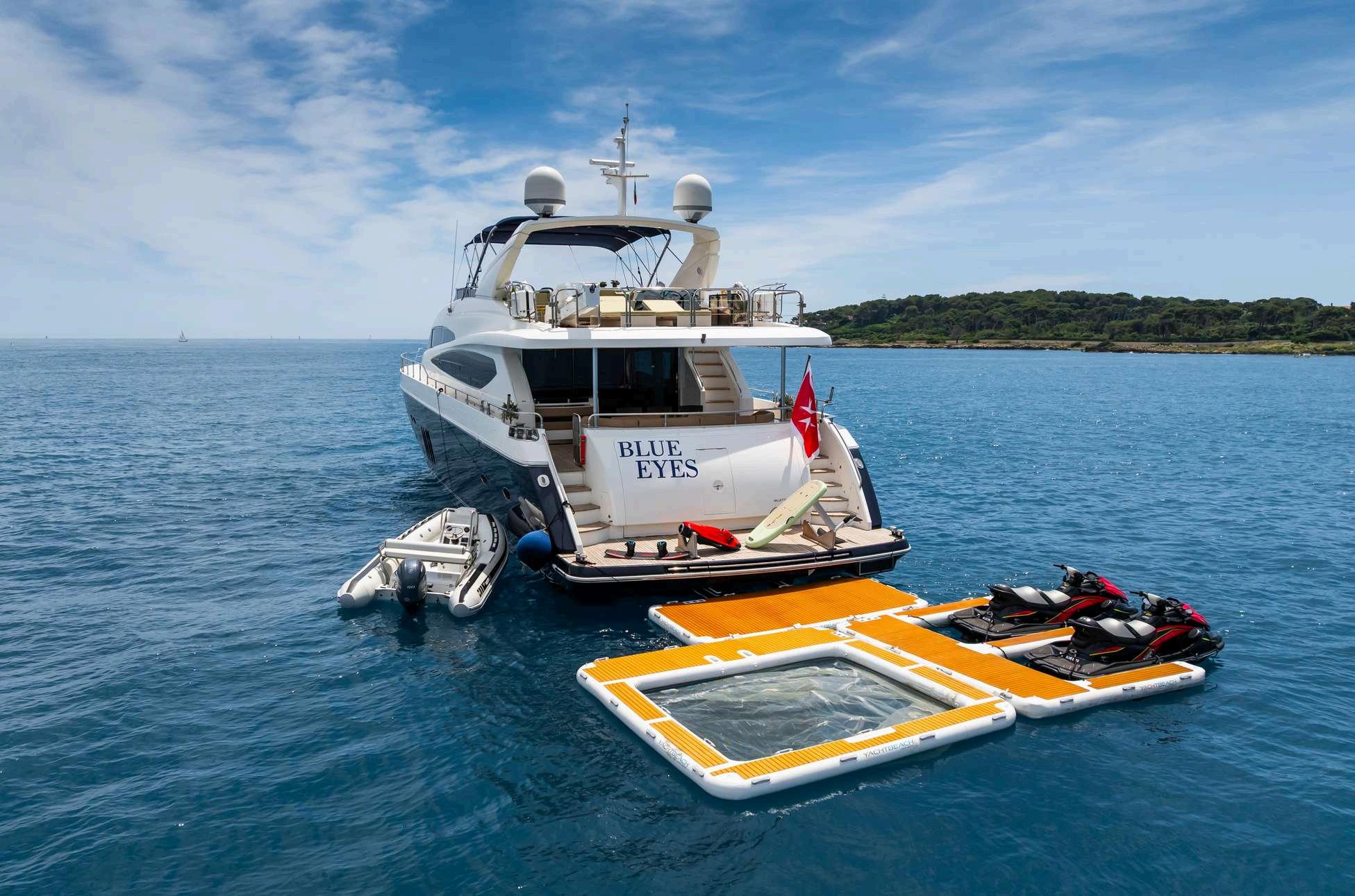 BLUE EYES is also equipped with a wide range of water toys, including 2 jet skis and more with a swimming platform perfect for guests seeking both relaxation and adventure.